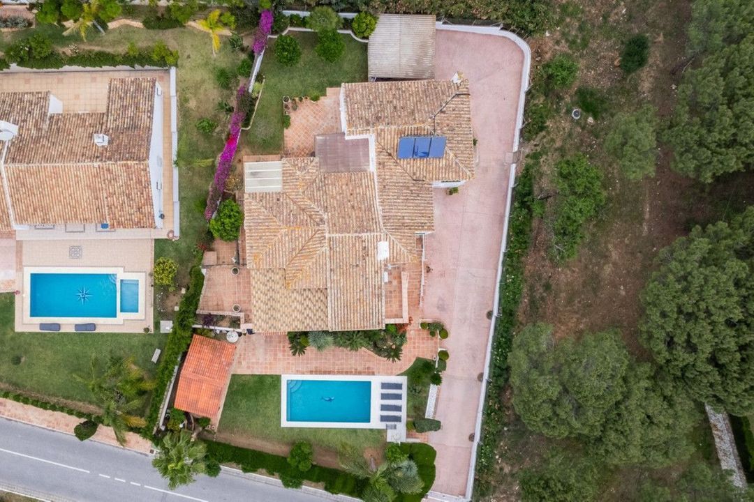 Set within this privileged setting, this beautifully renovated villa has been designed for effortless living, with generous proportions, abundant natural light and a warm, inviting ambience from the moment you step inside. The main level features three spacious bedrooms and three bathrooms, along with a striking double height living room with a wood burning fireplace and large windows that frame the greenery outside. The fully updated, well equipped kitchen is bright and functional, ideal for daily life and for entertaining. Several covered terraces extend the living space outdoors, perfect for morning coffee or relaxed evenings in the shade.