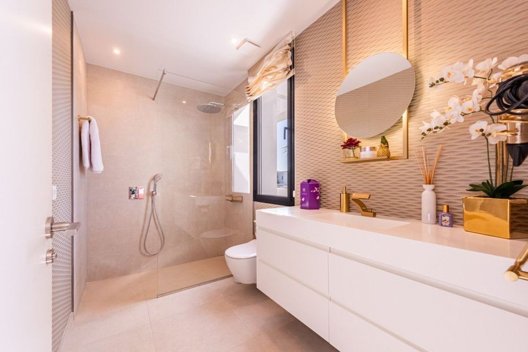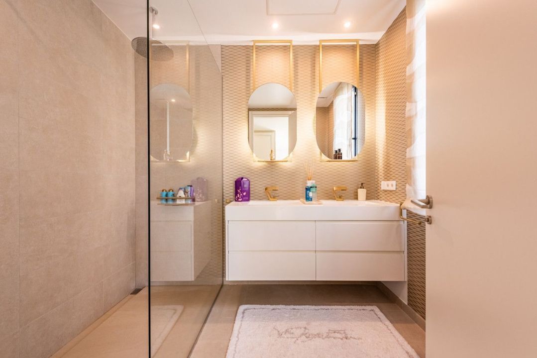 Deze prachtige woning beschikt over 5 en-suite badkamers en 2 stijlvolle gastentoiletten voor extra gemak. Binnen vindt u royale leefruimtes, waaronder een lounge, een strakke privébar, een volledig uitgeruste fitnessruimte en functionele wasruimtes — allemaal zorgvuldig ingericht met hoogwaardige meubels en designerdecoratie.