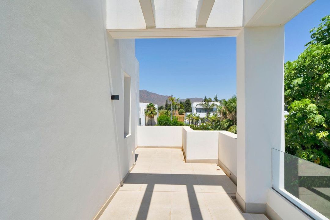 The ground floor boasts a stunning open plan living area, Through the impressive wooden front door which is both wide and tall, one enters the living room area, where the immediate impact of space and light create the feeling for this fabulous la Cala Golf villa. Floor to ceiling high quality patio doors flank all of the walls and are designed to slide delightfully into the walls, allowing that the interior open plan living space blends into the perfect alfresco experience by incorporation with the south-facing terrace. This terrace is further improved with the addition of glass curtains, meaning that come rain or shine, the outdoor space of this property is to be enjoyed, with the lovely views of the green and verdant gardens and the countryside beyond.