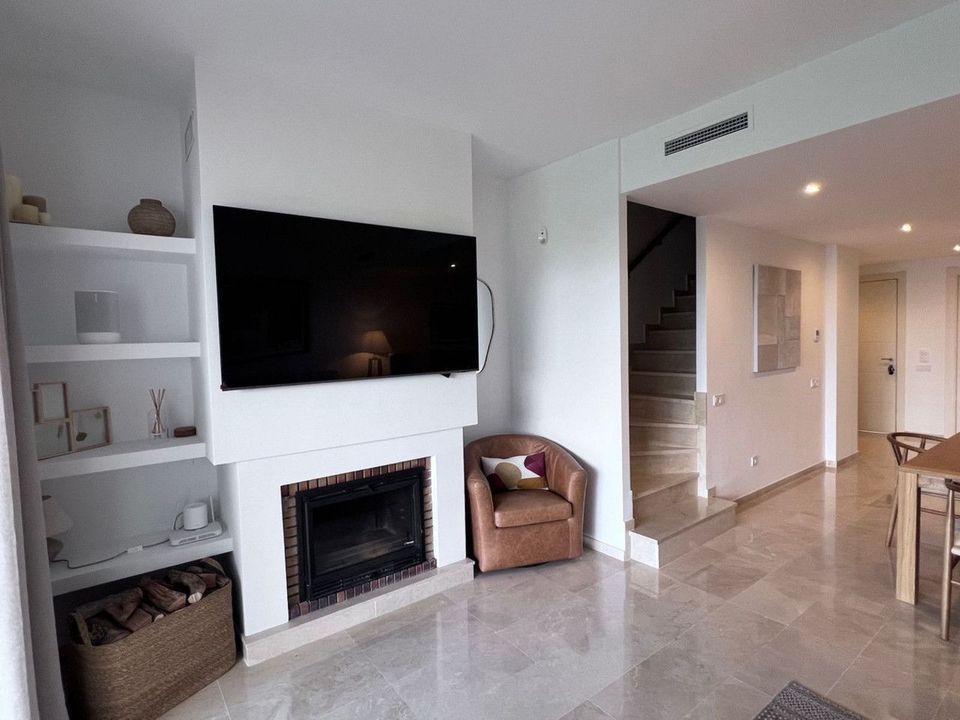 We are delighted to be able to offer for sale this immaculate 2-bedroom 2.5-bathroom townhouse located in the ever popular "Monte Alto" La Cala Golf. With its immaculate mature gardens, 2 communual swimming pools & tropical walkways. This townhouse offers 2 large double bedrooms, both with ensuite bathrooms & terraces, the master bedroom has fabulous mountain views & sea in the distance. Ample fitted wardrobes to both bedrooms with additional wardrobe storage on the landing. On the ground floor we have a fully fitted kitchen including an integrated fridge freezer, washing machine & a dishwasher, guest WC, good size dining area leading to the lounge area featuring a functioning fan assisted log burner for winter use, this then leads out on the terrace & garden area. The house offers direct internal access down to a private garage large enough to take 2 standard sized cars plus additional storage. The garage has its own private electric vented door. Further features include cream polished marble floors throughout, recently renewed ducted air conditioning system, hot & cold, Electric window shutters throughout, Double glazing, fibre optic internet. This house would make a perfect holiday or permanent home being just a short drive to La Cala De Mijas. La Cala Resort offers 3 championship golf courses, Hotel & Spa, Padel courts & various dining establishments. To be sold un-furnished.