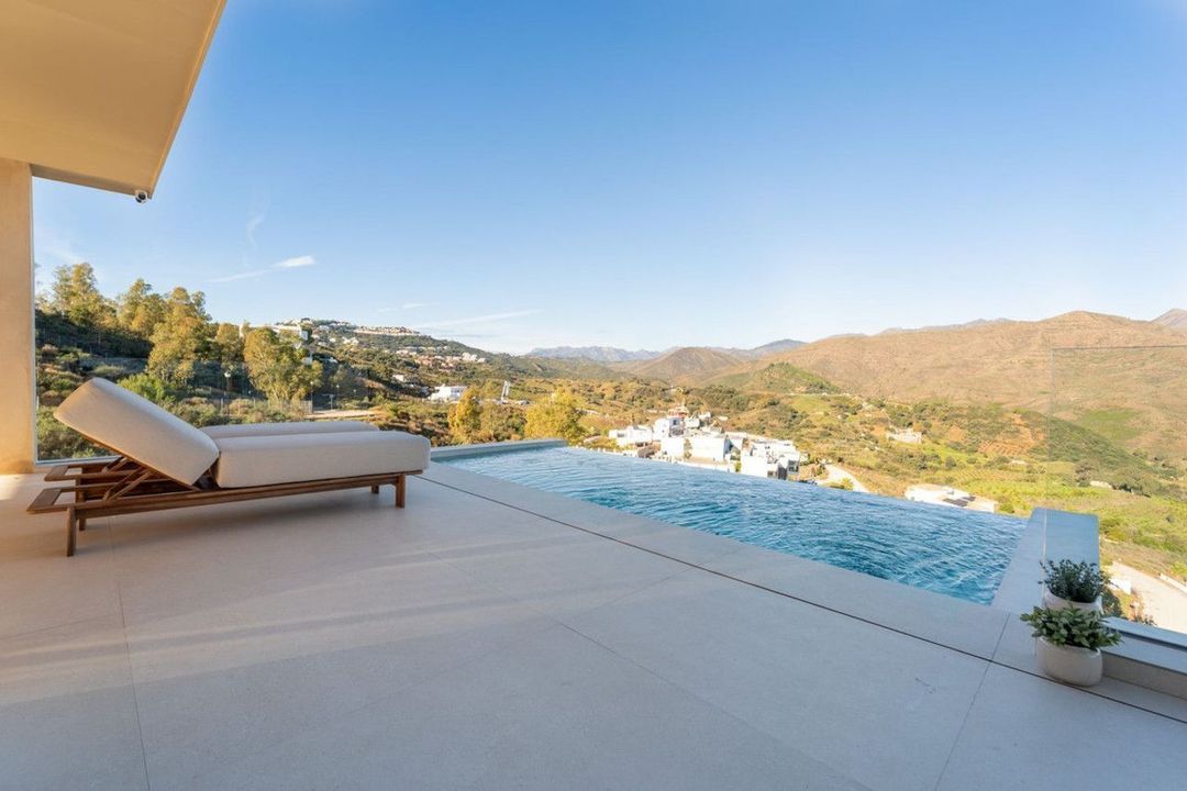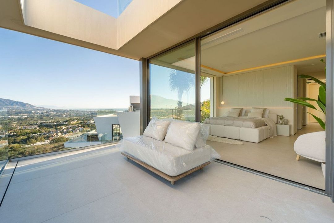 The first floor hosts a spectacular master bedroom with two walk-in wardrobes and a luxurious en-suite bathroom. There is also a second en-suite bedroom. An exterior staircase takes you up to the dream-like solarium, featuring a jacuzzi and outdoor lounge area, where you can soak up the sun all day and admire jaw-dropping views.