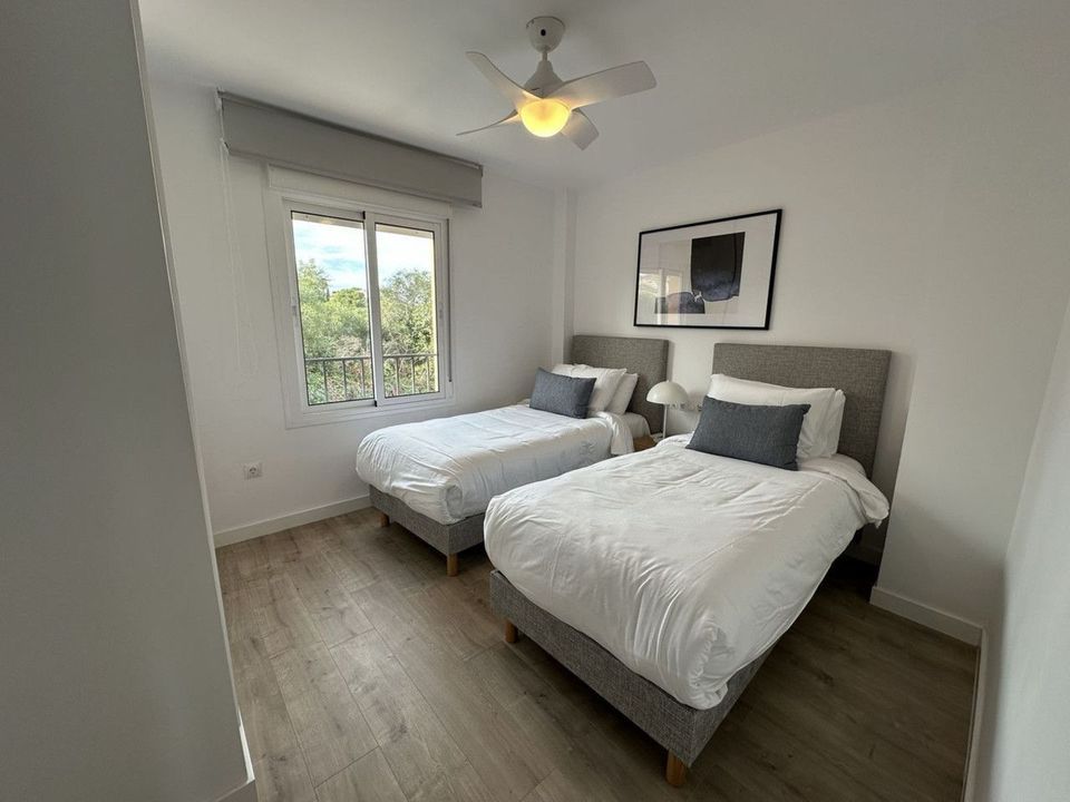 This townhouse with lovely views of the Mediterranean Sea is just steps away from the resort pools and one of the most beautiful beaches on the coast. The beachfront resort offers a wealth of activities and facilities, including a 24-hour reception, concierge services, 9 bars and restaurants, live entertainment, a kids club, communal pools, a kids pool and jacuzzi, beautifully maintained gardens, paddle/tennis courts, onsite medical facilities, resort transport links and a public taxi rank. The resort is incredibly close to La Cala de Mijas and Fuengirola, and a 20 minute drive to Marbella and 30 to Malaga. Recently fully renovated and sold with a modern furniture and decoration package.