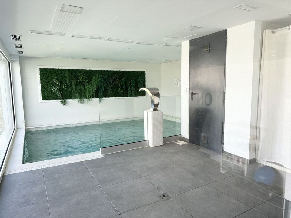 The gated community has a concierge on site during the day. The beautifully maintained gardens include three outdoor pools, an indoor pool, a social lounge with barbecue area, sauna, gym, paddle tennis court, and a playground for the little ones.