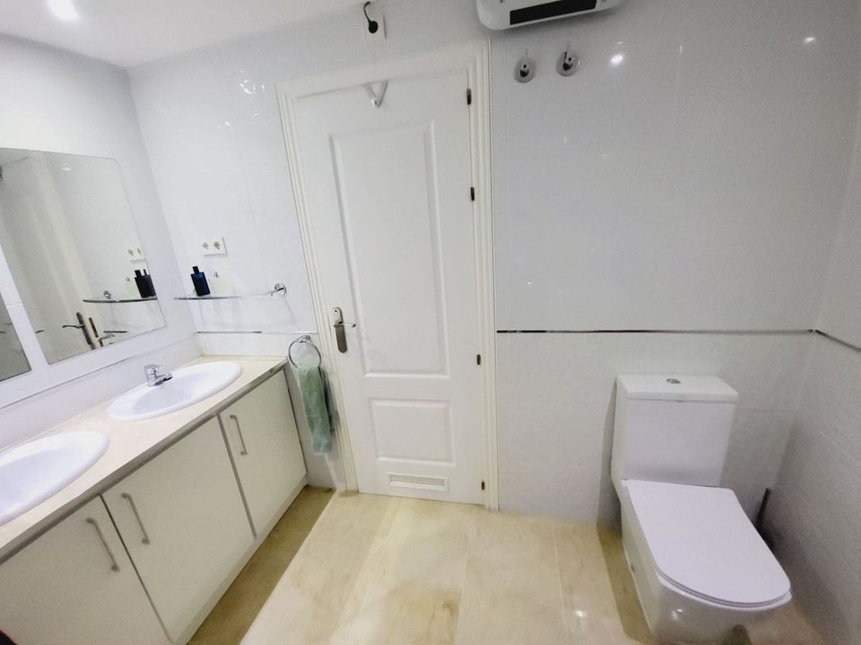 EXCEPTIONALLY LARGE AND SPACIOUS 2 BEDROOM 2 BATHROOM APARTMENT SITUATED IN A MUCH SOUGHT AFTER AND EXCLUSIVE COMMUNITY. THE APARTMENT IS A GROUND FLOOR PROPERTY WITH A 50m2 TERRACE THAT LEADS OUT DIRECTLY TO A SMALL PRIVATE GARDEN AREA. THE PROPERTY HAS A HAS A SUNNY SOUTH WESTERLY ASPECT AND OFFERS BOTH SUN AND SHADE. FINISHED TO THE HIGHEST STANDRADS THROUGHOUT THE APARTMENT BRIEFLY COMPRISES: ENTRANCE HALLWAY WITH FITTED WARDROBES FOR STORAGE, SEPARATE GOOD SIZED QUALITY KITCHEN, HUGE OPEN PLAN LOUNGE AND DINING AREA, DOUBLE GUEST BEDROOM WITH FITTED ROBES, GUEST BATHROOM AND A MASTER EN-SUITE BEDROOM WITH FITTED ROBES. THE LOUNGE AND MASTER BEDROOM HAVE DIRECT ACCESS TO THE STUNNING TERRACE AREA WHICH IS USED BY THE CURRENT OWNERS AS AN ADDITIONAL LIVING SPACE AS WELL AS AN INDEPENDENT OFFICE AREA. TASTEFULLY PRESENTED THROUGHOUT IN EXCELLENT CONDITION WITH THE HIGH QUALITY FURNISHINGS BEING INCLUDED IN THE PRICE.