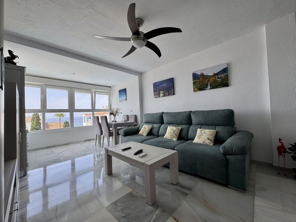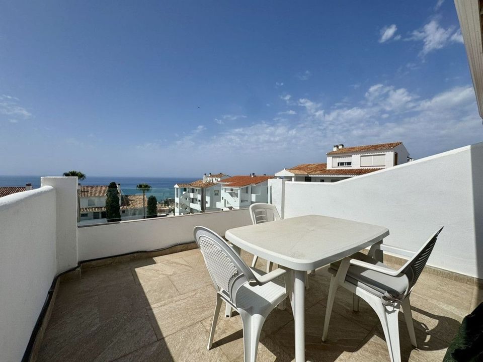 On the entrance level, you'll find a cozy living room, a fully equipped kitchen, and a modern bathroom. Upstairs, there's a spacious bedroom with direct access to a private terrace where you can enjoy breathtaking views of the sea and the Mijas coastline.