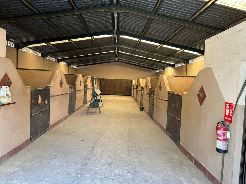 The property sits on a 15,000 m² plot fully equipped for professional equestrian use. It includes an official equine operation code, spacious paddocks, work areas, and two large barns with a total of 39 boxes.
