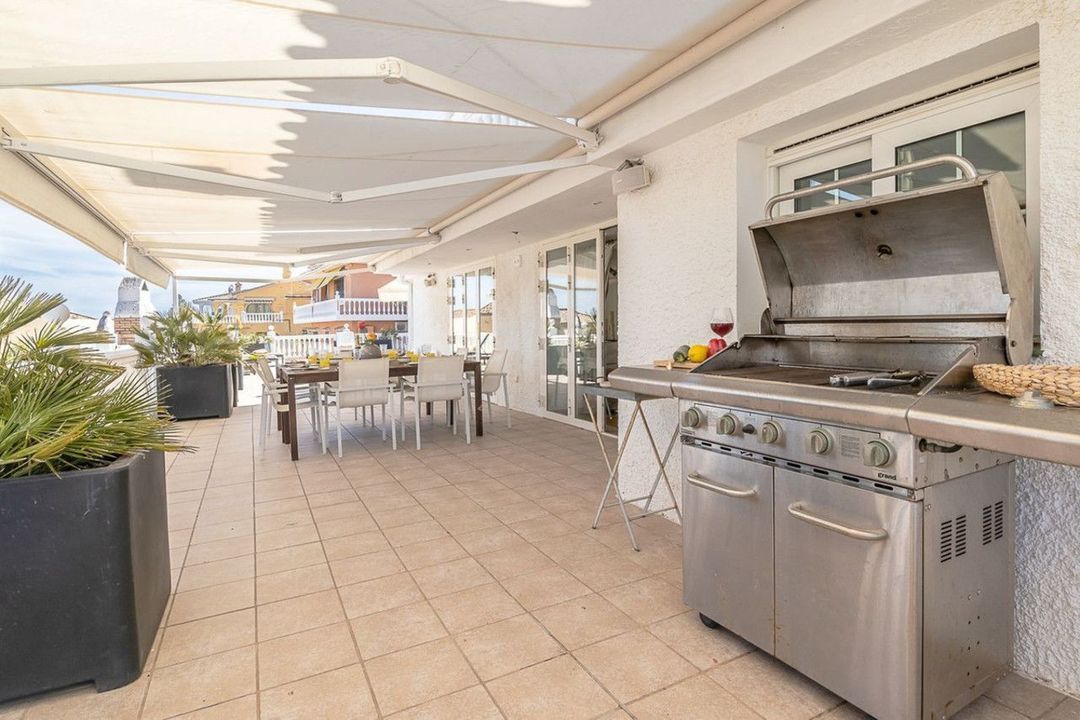 Veiligheid en privacy definiëren deze woning, omgeven door een ommuurde tuin die alleen toegankelijk is via een privébeveiligingspoort. Als u binnenstapt, verwelkomt de villa u met een overvloed aan natuurlijk licht dat door de grote ramen naar binnen stroomt en de ruime woonkamer verlicht. De woonkamer, met open haard, creëert de perfecte ruimte voor ontspanning en vermaak.