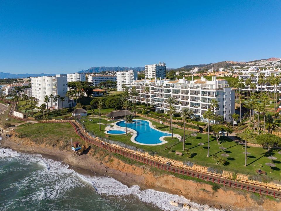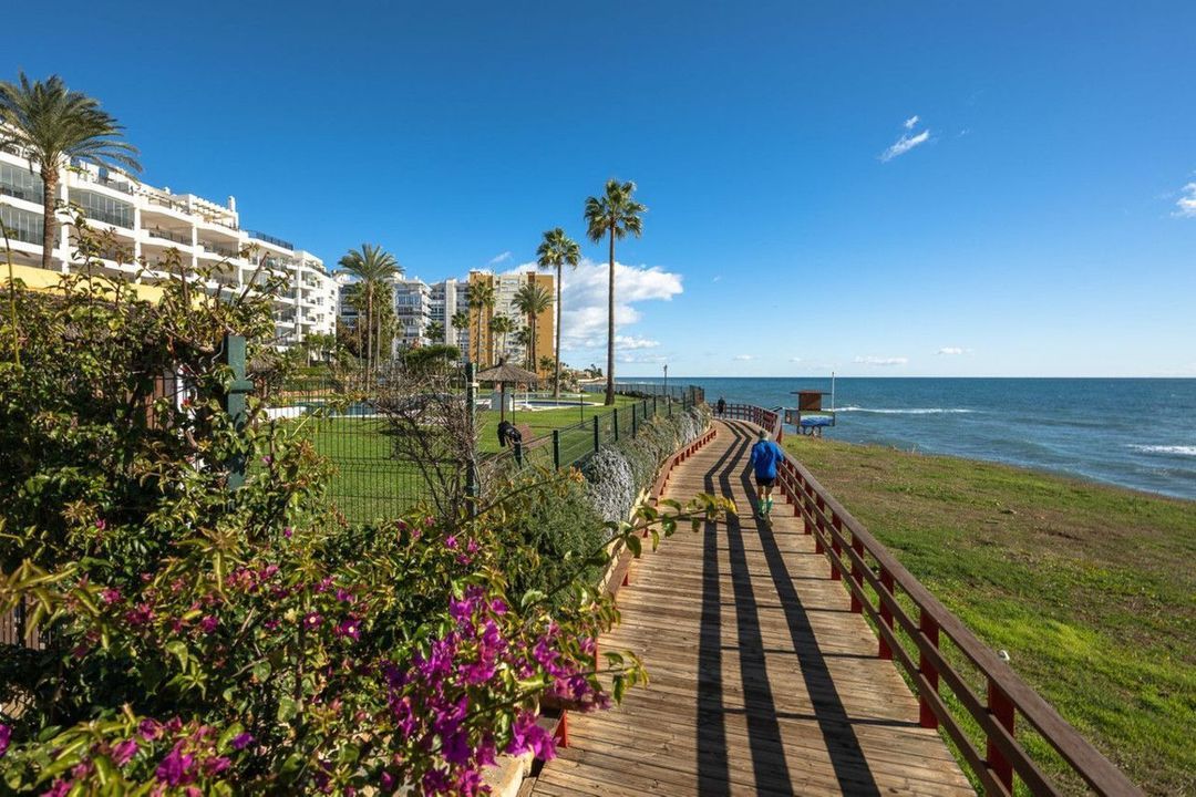 We are delighted to present this beautiful 2-bedroom, 2-bathroom beachfront apartment, ideally located in the prestigious and well-established Mi Capricho urbanisation in Sitio de Calahonda, Mijas Costa. Set within an exclusive gated community with direct access to the promenade and beach, this property offers an exceptional blend of lifestyle, comfort, and investment potential on the Costa del Sol.