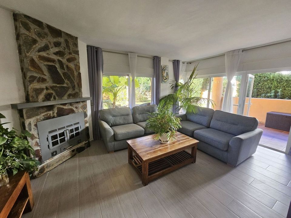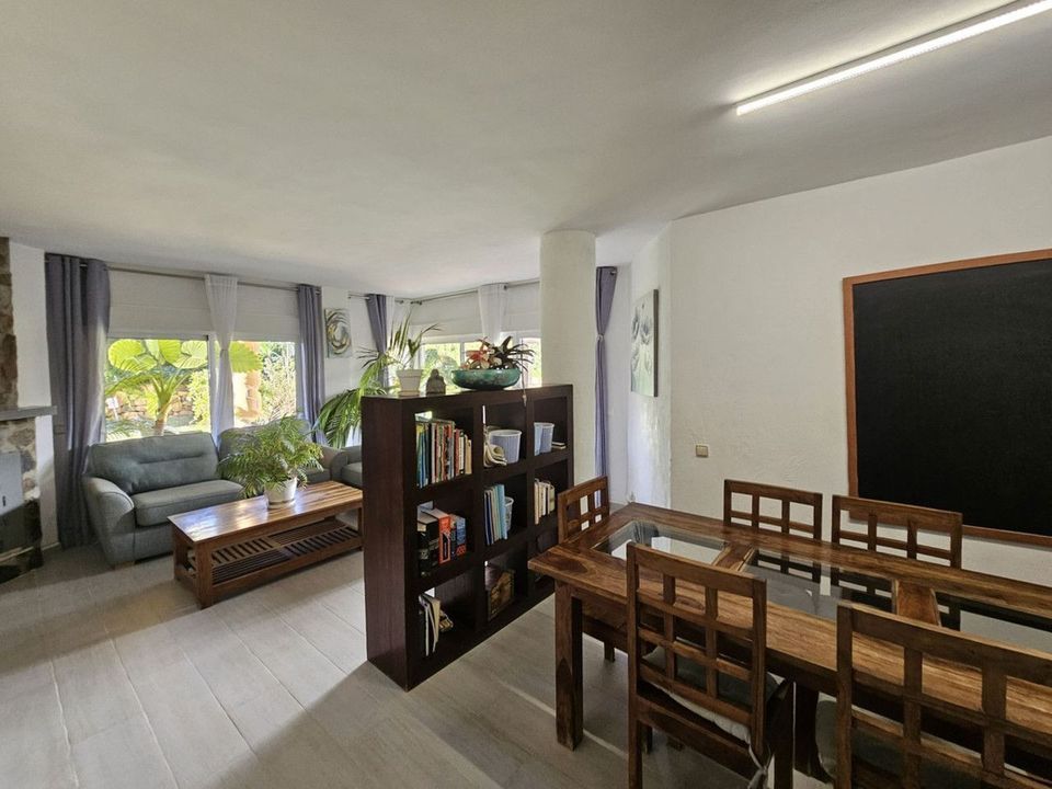 A large apartment in Calahonda, originally a spacious three-bedroom, three-bathroom unit, featuring a huge living room with a fireplace, a separate dining room, a large kitchen with a utility room, and a magnificent terrace.