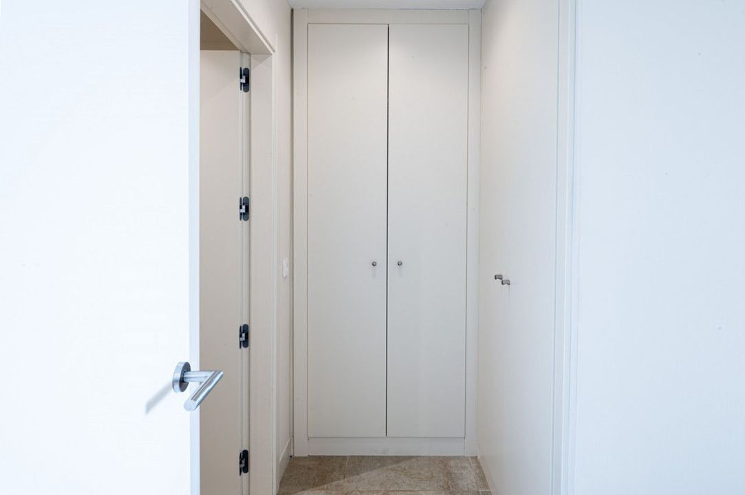 Bij binnenkomst in de woning vindt u twee slaapkamers met inbouwkasten en een badkamer aan de achterzijde van het appartement. Beide slaapkamers hebben toegang tot een kleiner terras. Aan de voorzijde bevindt zich de woonkamer met de elegante open keuken. Vanuit hier heeft u direct toegang tot het ruime terras via prachtige schuifdeuren die in de muur verdwijnen, waardoor er een perfecte overgang ontstaat tussen binnen en buiten.