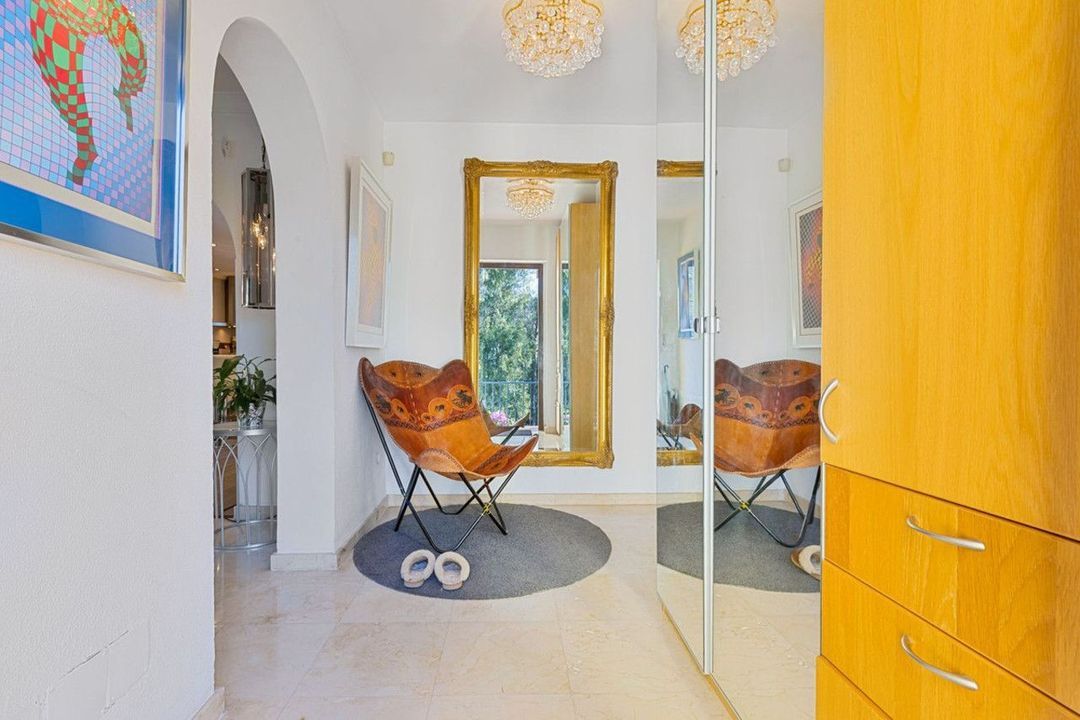 The villa is located one floor up from the street. At street level there is a private garage with space for 1 car.