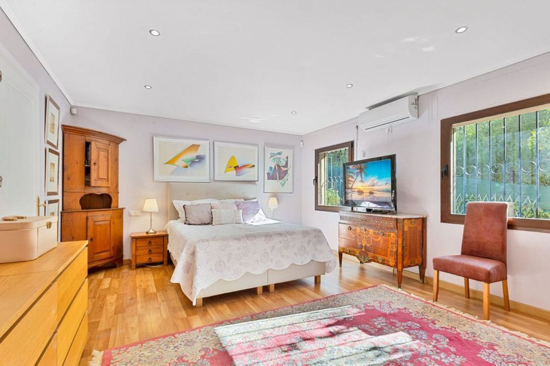 Charming and well-maintained villa on one level in the quiet area of Campo Mijas only 3 km from the beach in Fuengirola. The villa is very private with a nice pool area with bar and large terrace areas. The garden is easy to maintain as it is mostly paved with stones but with nice flower beds with several fruit trees such as passion fruit, lemon, orange, pomegranate, mango and sweet, Spanish "nisperos".