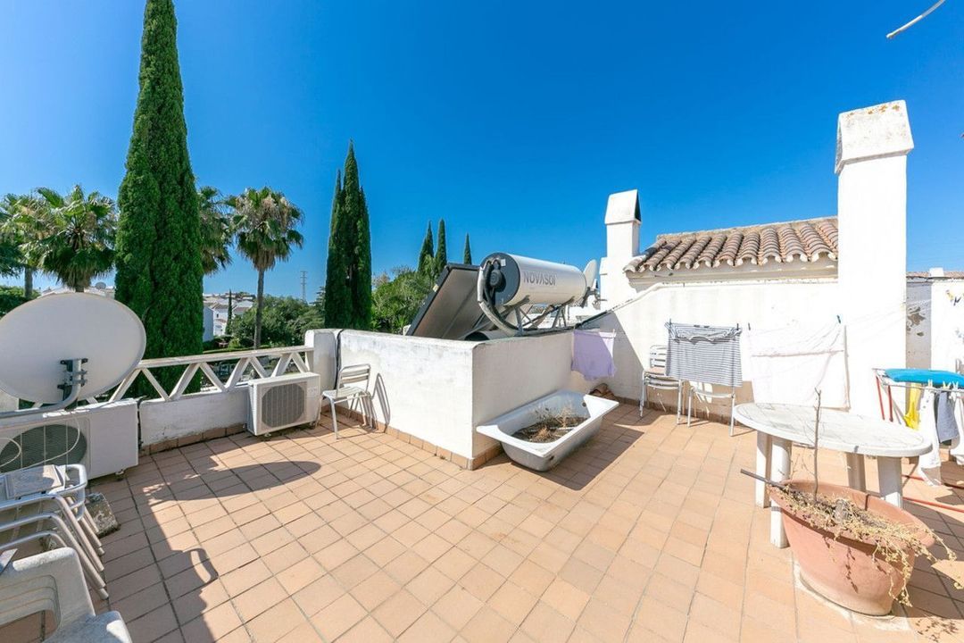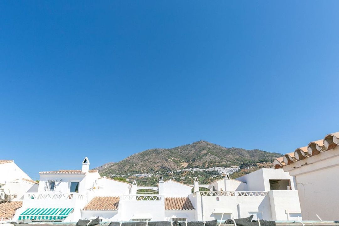 Rooftop terrace of 35 m² with open views of the Sierra de Mijas and the urbanisation's green areas.