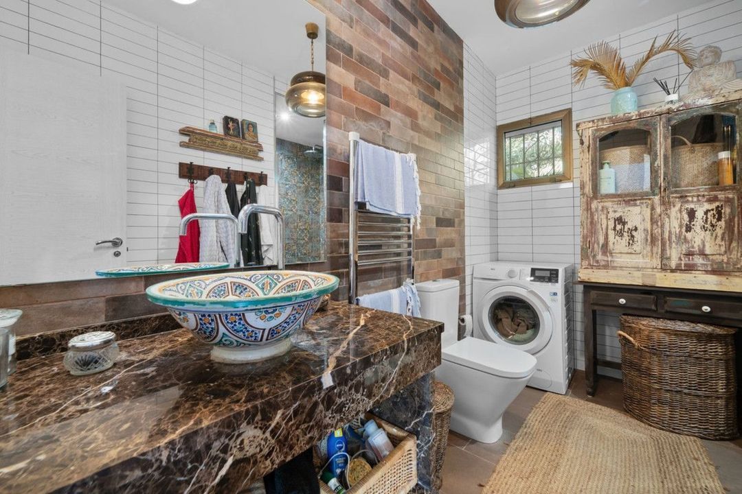 All three bedrooms are generously sized, and the villa includes two recently renovated bathrooms with walk-in showers. On the lower level, the former garage has been converted into a cozy and stylish living space, ideal for family gatherings or as an additional bedroom.