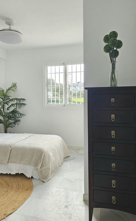 Beautiful 3 bedroom + 2 bathroom apartment for sale in Miraflores area. Spacious south & west facing covered terrace with open green views to the Miraflores golf course and gardens. Nice and quiet location only few minutes drive away from the beach village La Cala de Mijas and the amenities in Riviera del Sol.