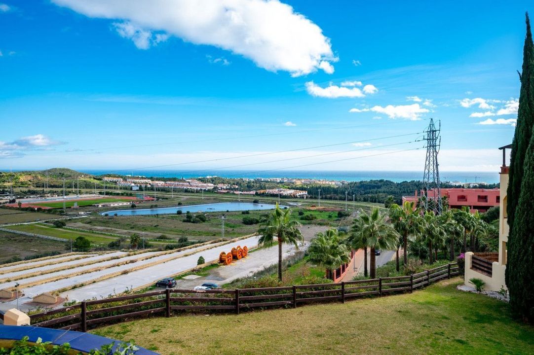This spacious and very bright apartment is located in the upper part of El Chaparral in a gated community with a video entry system, with views of the racetrack and the sea. In a quiet area yet just minutes from Fuengirola and Cala de Mijas, this apartment is sold fully furnished and offers spacious rooms, including a separate kitchen with utility room, a living-dining room with access to the terrace, two double bedrooms, two full bathrooms, one ensuite, a terrace with views, and a parking space and storage room included. The community also has guest parking, a swimming pool, sauna, gym and gardens. Don't miss this opportunity!
