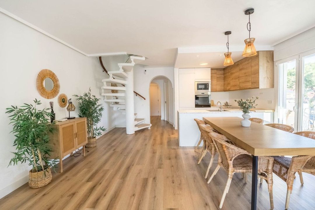 The house has been renovated, offering a modern and functional style. It features an open-plan kitchen connected to the living room, creating a bright and spacious area, perfect for everyday living or entertaining guests in a comfortable and contemporary setting.