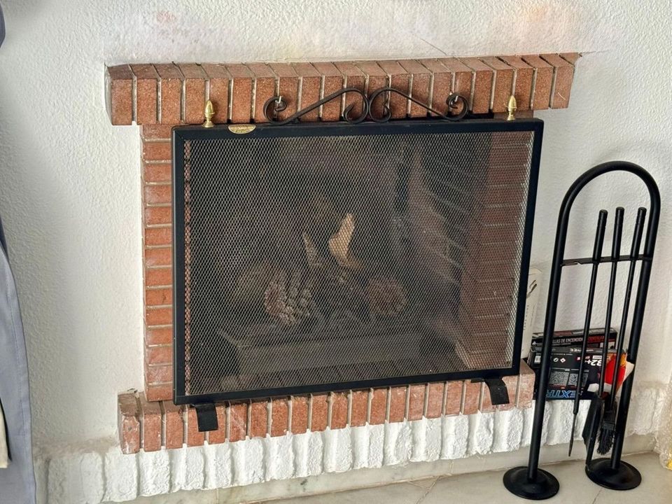 The kitchen opens via a serving hatch to a bright living-dining room with fireplace, which in turn leads to the main terrace, an ideal space for entertaining or simply enjoying the stunning coastline views.