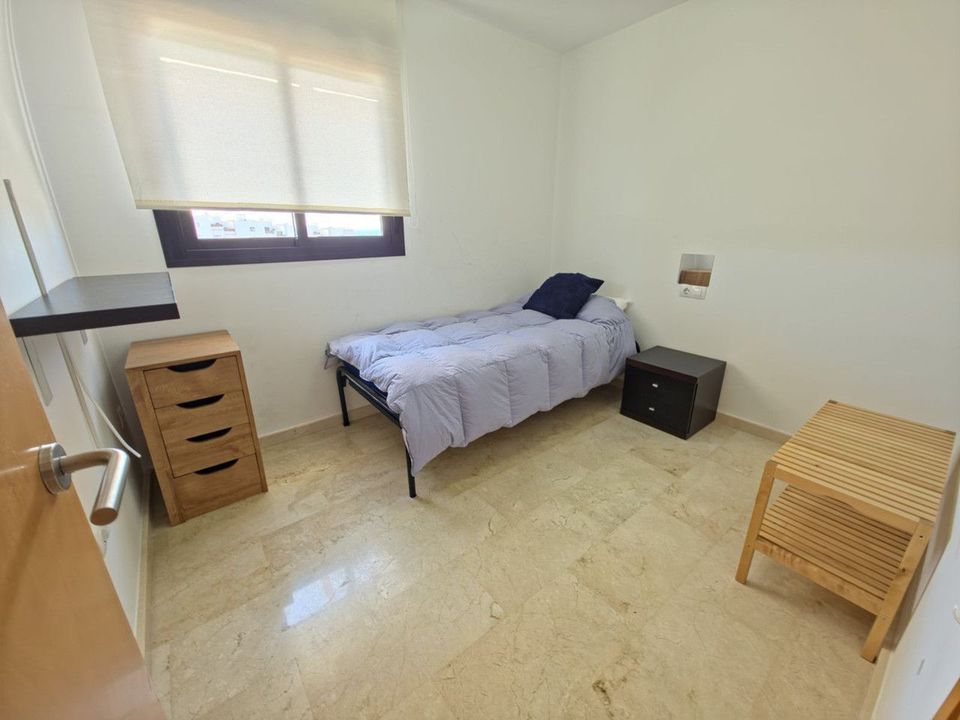 De 94 m² zorgvuldig onderhouden binnenruimte beschikt over drie ruime slaapkamers en twee elegante badkamers, waaronder een stijlvolle en-suite. De lichte en luchtige woonkamer opent direct naar een van de twee privéterrassen aan weerszijden van het penthouse, zodat u de hele dag van zon of schaduw kunt genieten.