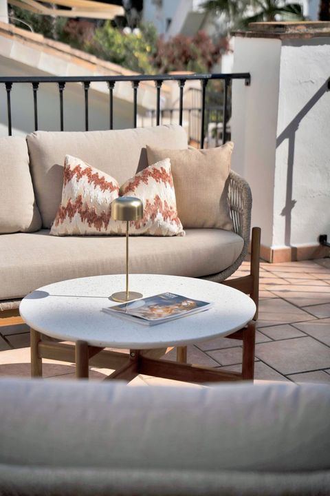 Gelegen in het hart van Calahonda een vrijstaande villa met 3 slaapkamers, volledig gerenoveerd en gemeubileerd, die absolute rust en privacy biedt, terwijl alle voorzieningen zich op slechts enkele minuten afstand bevinden. Verdeeld over drie niveaus combineert de woning een elegant, modern design met warme mediterrane accenten: natuurlijke materialen, zachte aardetinten en zorgvuldig gekozen details creëren een tijdloze en uitnodigende sfeer.