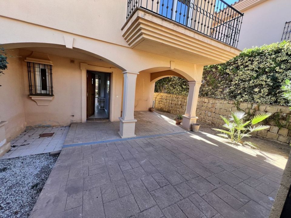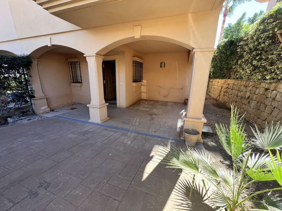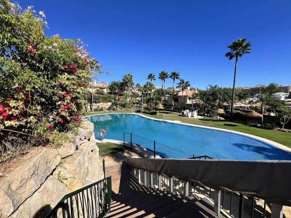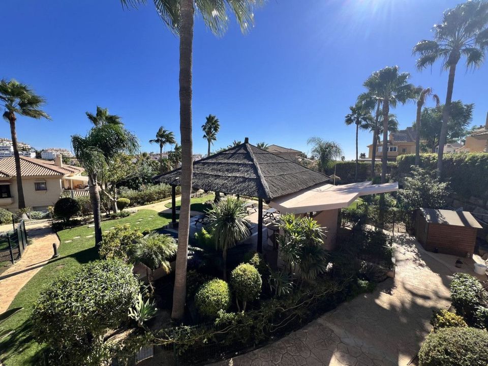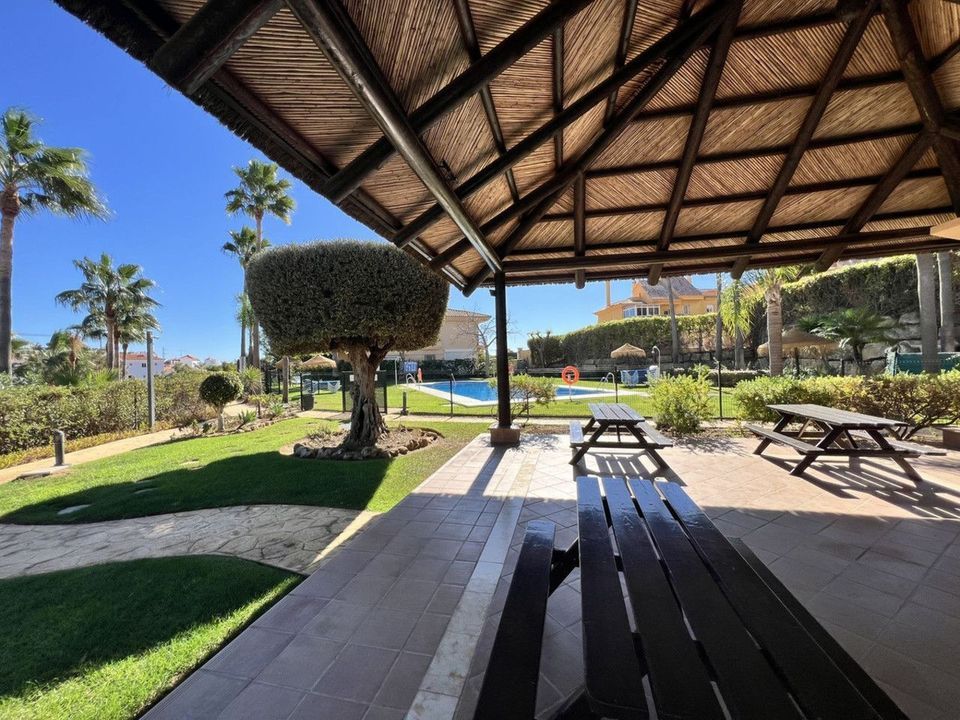 The communal areas include two swimming pools, one of which is open year-round, as well as a barbecue area with tables. Garden maintenance is included in the community fees.