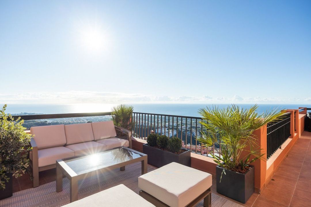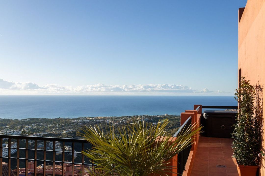 This exceptional residence offers an exquisite blend of design, comfort, and panoramic beauty. Spanning a built area of 145 m², the apartment features two private terraces totalling 45 m², each thoughtfully designed with lush greenery, an automatic irrigation system, and a private jacuzzi. The 270° views embrace the sea, coastline, and surrounding hills — on clear days, even Gibraltar and the distant coast of Africa grace the horizon. A private 14 m² garage with direct elevator access ensures convenience and exclusivity at every turn.