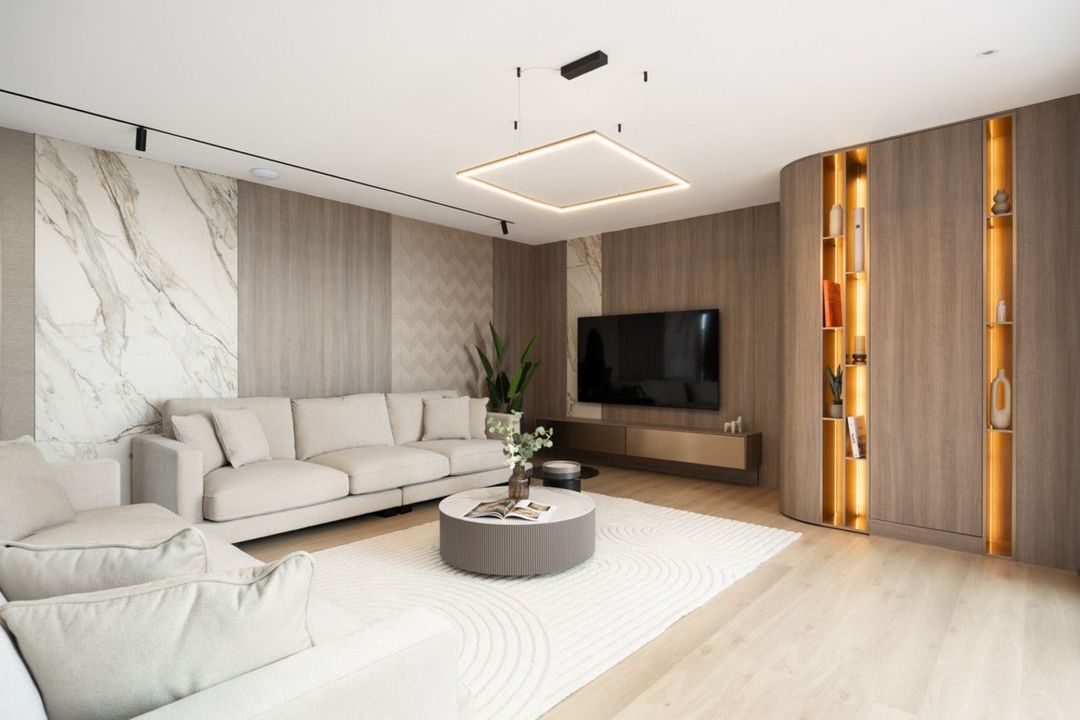 A state-of-the-art smart home system integrates seamlessly throughout the apartment. Concealed LED and ambient lighting, Maytoni designer fixtures, and a Bticino Living Now switch system create mood and ease at the touch of a button. Smart air-conditioning, high-speed fibre internet with boosters in every room, and a fully connected electrical network ensure luxury living in its most intelligent form.