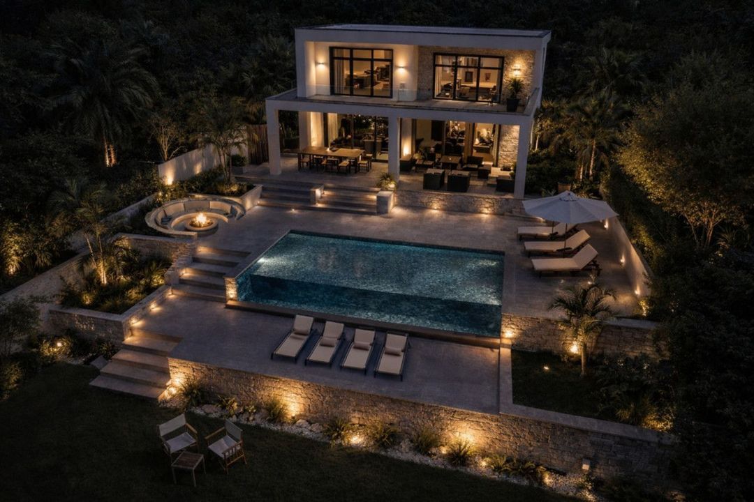 - Verzonken buitenlounge met vuurfeature