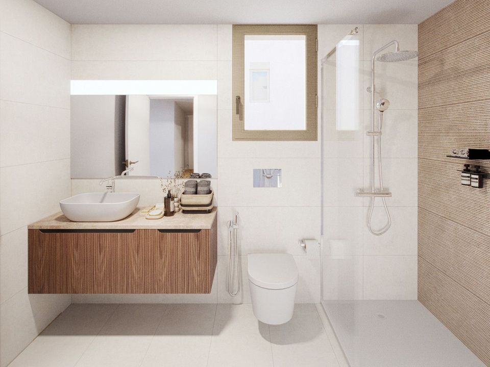 Door de hele woning worden hoogwaardige materialen gebruikt, waaronder grootformaat porseleinen vloeren, laminaat houten vloeren in de slaapkamers en vloerverwarming in de badkamers. De woningen zijn verdeeld over meerdere niveaus en bieden opties zoals een privé-lift, zwembad, zonnepanelen, twee privéparkeerplaatsen en ruime opslagruimtes.