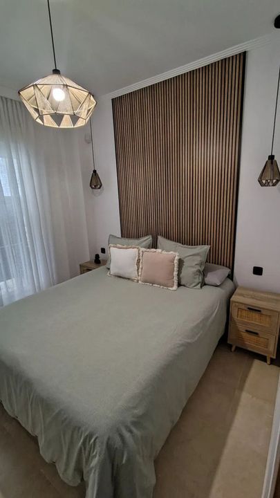 The property is a south-facing ground floor flat with views of the gardens from the terrace. This fat comprises two generously proportioned, well-lit bedrooms with fitted wardrobes, two bathrooms with excellent finishes, and a comfortable living-dining room that opens onto a cosy covered terrace. Besides, the fully furnished kitchen is located in a separate space. This flat also includes a parking space and storage room for the convnience of residents.