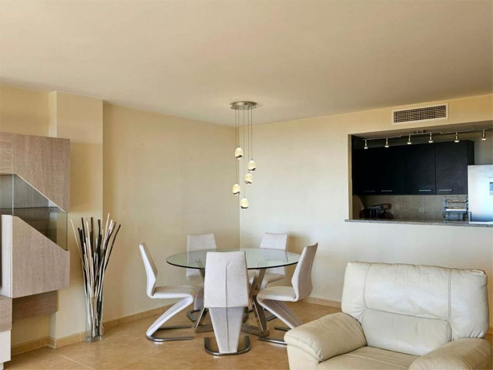 The property features a generously proportioned living-dining room that is both well-lit and airy, with a fully fitted, semi-open-plan kitchen integrated into the space. This living room opens onto a south-facing terrace, offering stunning views of the sea and the surrounding area. Moreover, the property's three bedrooms are comfortable and well-lit, with built-in wardrobes. The two bathrooms are fully fitted and feature top-quality finishes. Also, the flat includes a storage room, a laundry area and a garage with space for two small cars.