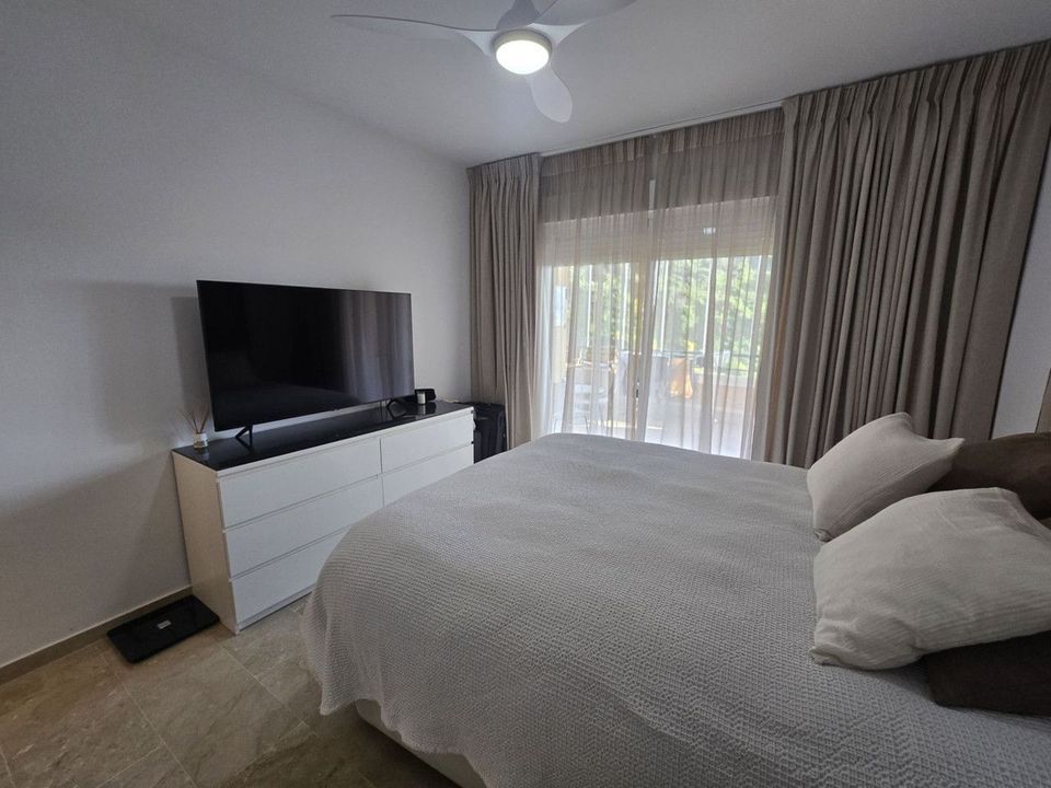 De hoofdslaapkamer heeft een eigen en-suite badkamer. Het appartement profiteert van een eigen ondergrondse parkeerplaats en een lift in het gebouw voor extra gemak.