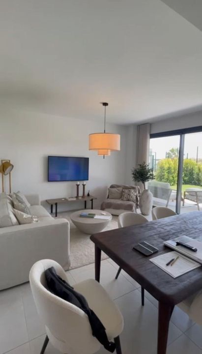 The communal areas of the urbanization are designed to provide maximum comfort and wellbeing, including large landscaped gardens, several swimming pools, a fully equipped gym, a sauna, and a modern shower circuit, all within a private and secure environment.