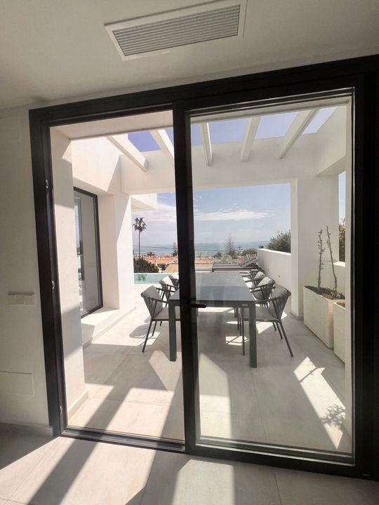 Op een uitzonderlijke locatie, op slechts 280 meter van de zee en de nieuwe boulevard van El Chaparral, vindt u deze indrukwekkende moderne villa met een werkelijk fantastisch en panoramisch zeezicht – een zeldzaamheid op zo'n korte afstand van de kust.