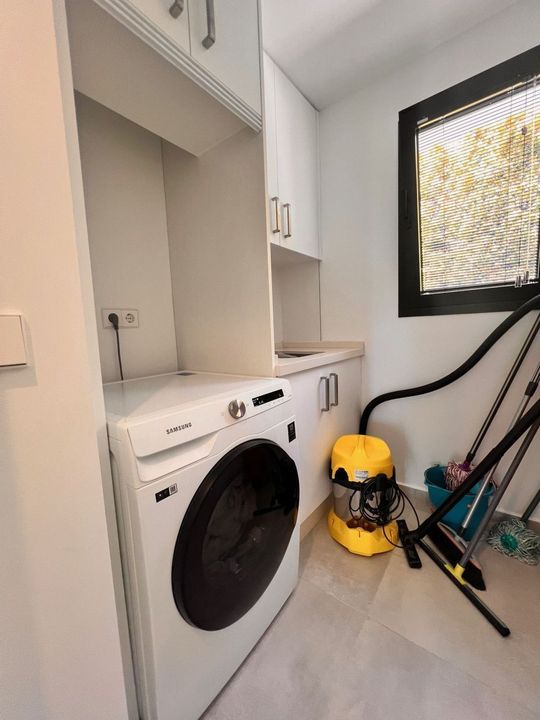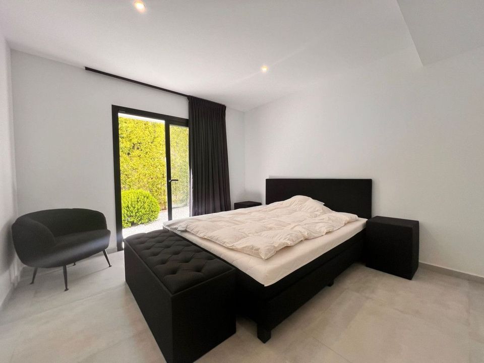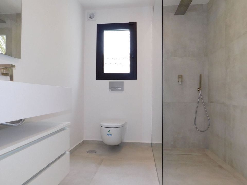 Op deze verdieping bevinden zich tevens de ruime hoofdslaapkamer met en-suite badkamer en nog twee slaapkamers die een stijlvolle gastendouchekamer delen. Alle kamers zijn voorzien van ingebouwde kasten en individuele airconditioning. Een aparte wasruimte zorgt voor extra praktisch comfort.