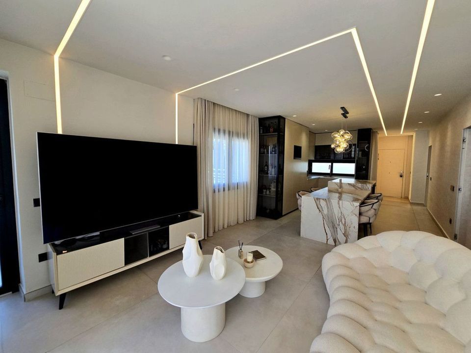 It offers 155 m² built area, distributed into 2 spacious bedrooms and 3 modern bathrooms, all finished to high-quality standards. Bright living room with direct access to a terrace, providing an excellent indoor-outdoor connection.
