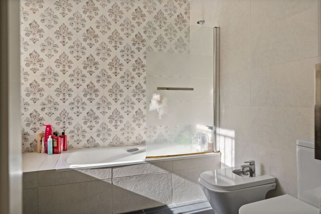 Bij binnenkomst omarmt de ruime woon-eetkamer u met natuurlijk licht dat ongehinderd stroomt, wat zorgt voor een direct gevoel van welzijn en orde. De binnenarchitectuur, ontworpen voor modern wonen, sluit naadloos aan op de slaapkamers, waarvan twee met een eigen badkamer en-suite, wat een persoonlijk heiligdom van rust en dagelijkse luxe biedt.