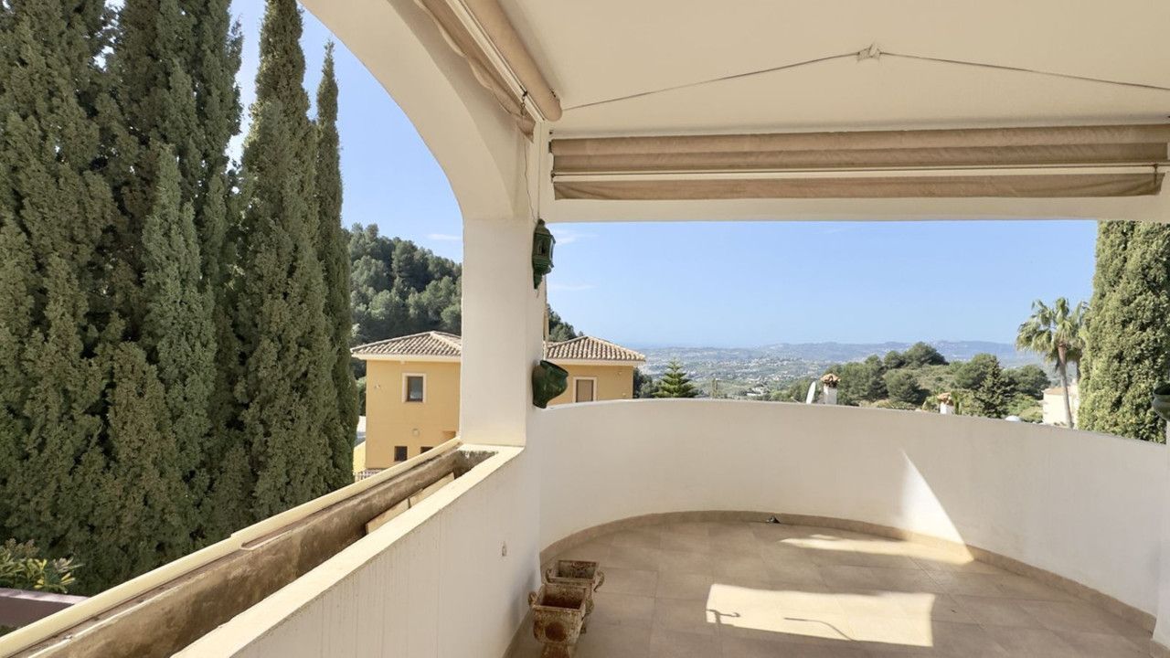 Located in the prestigious Buena Vista area of Mijas, this spacious corner townhouse offers a rare combination of panoramic views, privacy and excellent value-add potential.
