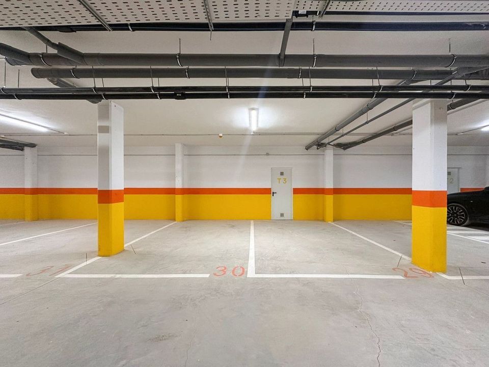 Het appartement beschikt bovendien over twee privéparkeerplaatsen en een extra berging van 16,29 m², gelegen in de garage direct achter de parkeerplaatsen.