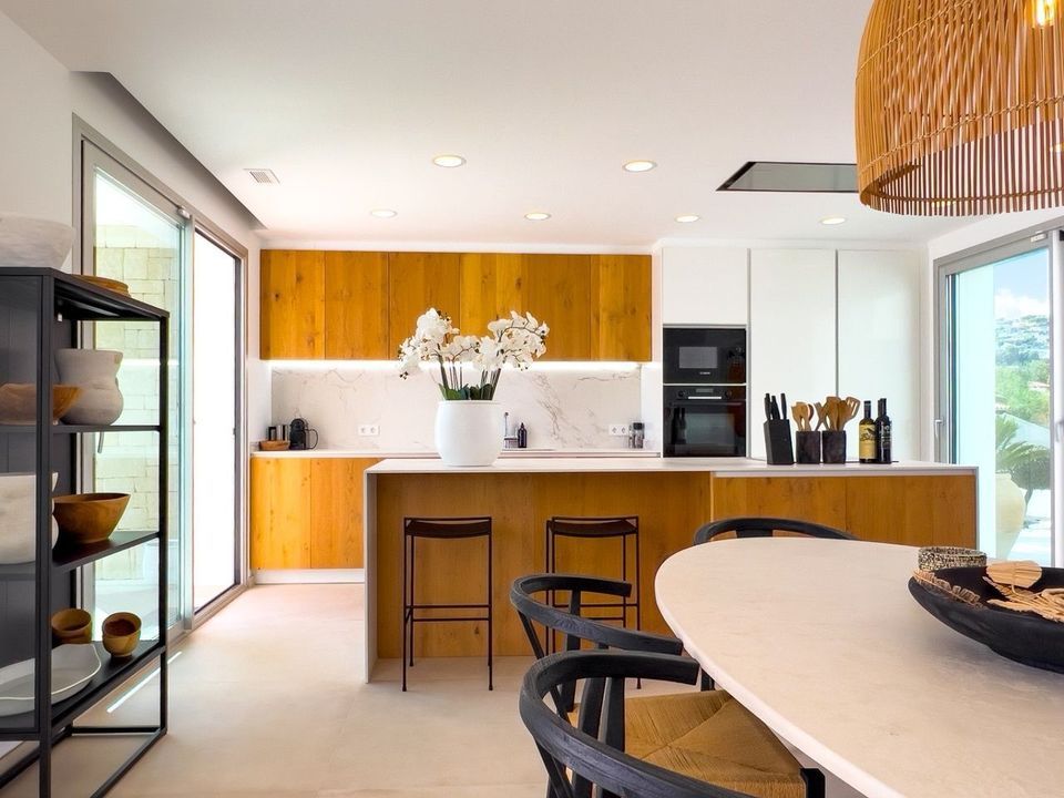 Villa in Moraira, gebouwd in 2021, op het zuiden gericht met panoramisch zeezicht. Gelegen op 1,0 km van het strand en 1,2 km van het stadscentrum, op loopafstand. Privéperceel met tuin, infinity pool van ca. 40 m², terrassen (sommige overdekt) en buitenkeuken.