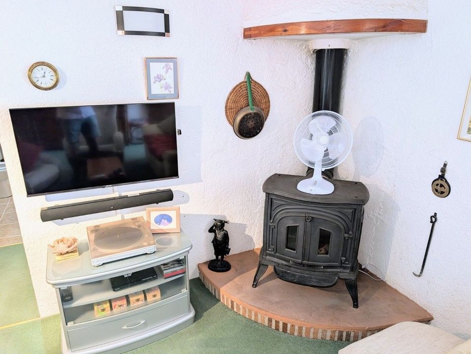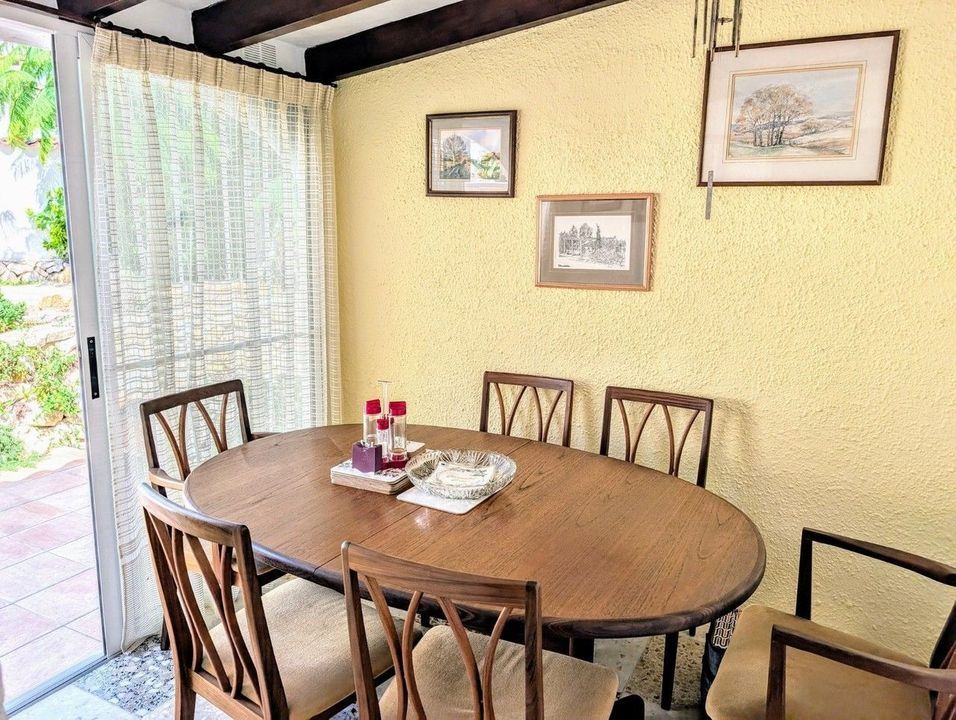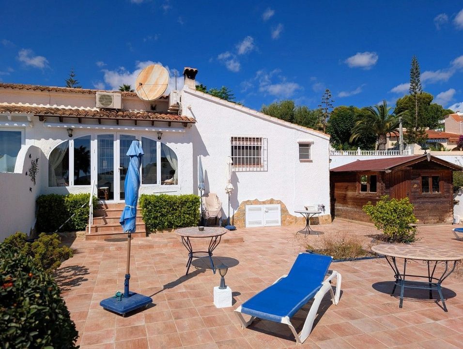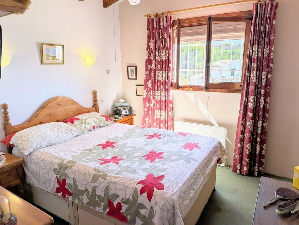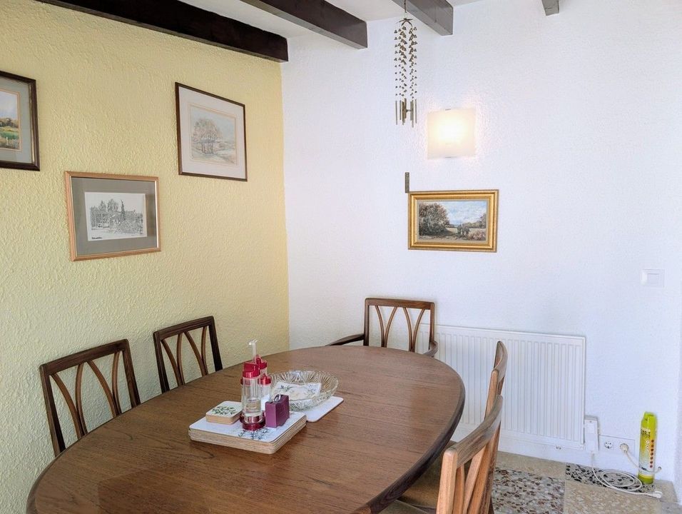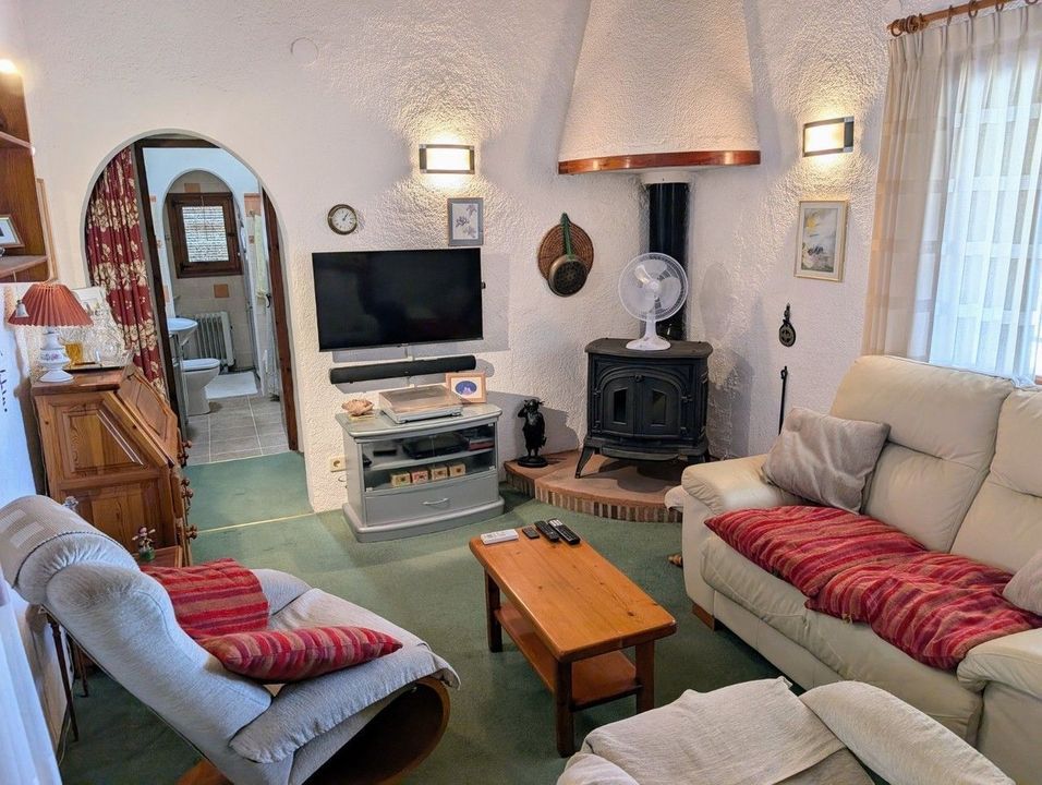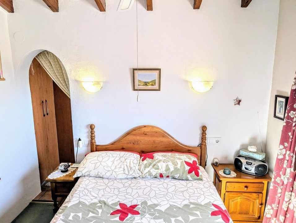 De mooie, gezellige villa met prachtig uitzicht over de vallei naar de zee ligt in La Sabatera, op loopafstand van een klein winkelcentrum en slechts een klein eindje rijden naar het strand, het stadscentrum en alle voorzieningen. De villa is gelijkvloers en ligt in een rustige doodlopende straat. Je komt aan bij het huis, parkeert in de carport en gaat dan een paar treden af naar de voortuin. Je komt de villa binnen via glazen schuifdeuren in een eetkamer en vervolgens in de kleine maar goed ingerichte en uitgeruste keuken met granieten wokbladen. Via een boog kom je in de woonkamer met een hoek open haard en houtkachel, via een andere boog kom je in een kleine hal. Aan de linkerkant is een tweepersoonsslaapkamer met ingebouwde kasten, rechtdoor is de badkamer van het huis met een badmeubel en een bad met douchebevestiging, aan het einde van deze badkamer is een bijkeuken. Aan de rechterkant is de ouderslaapkamer met ingebouwde kasten en een en-suite badkamer met kleedruimte, badmeubel, verwarmd handdoekenrek en een inloopdouche. Via een deur in de woonkamer kom je in de glazen naya, een kamer op het zuiden met prachtig uitzicht over het uitgestrekte terras en de zee. Via vijf treden naar beneden kom je op het terras van ongeveer 180m2, genoeg ruimte om buiten te eten, te zonnebaden, te ontspannen en de hele dag van de zon te genieten. Het zou mogelijk kunnen zijn om een zwembad of bubbelbad te hebben, maar dit moet worden bevestigd door de planningsafdeling van het gemeentehuis. Aan de linkerkant van de villa staat een grote houten schuur/werkplaats en daarachter is een barbecueterras met granieten tafel en werkblad. Hier vind je ook een bijkeuken met een boiler en een wasmachine. De tuin heeft een verscheidenheid aan volwassen planten en bomen, waaronder een Jacaranda, een flessenborstel en twee prachtige Hibiscussen.- Belangrijkste punten:- Gebouwd: 1978- Huidige eigenaren sinds 1980- Airconditioning in woonkamer en beide slaapkamers- Houtkachel- Hoge hellende plafonds met balken- Carport plus parkeerplaats op straat voor bezoekers- Jaarlijkse belastingen 500€ +/- onroerende voorheffing en afvalbelasting totaal- Afstanden:- 1km klein winkelcentrum- 2.5km groot winkelcentrum- 2.7km naar strand en centrum- 3.2km naar golf- 9.2km naar de snelweg in Benissa