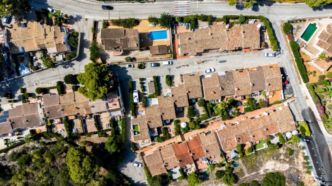 Het exterieur biedt een eigen parkeerplaats en een berging onder het terras. Aan de achterzijde ligt een ruime tuin op het noorden. Op korte loopafstand, minder dan 200 meter, bevindt zich het gemeenschappelijk zwembad dat in 2024 vernieuwd is. Het centrum van Moraira en het grote zandstrand liggen binnen tien autominuten. Het strand van Andrago en de dichtstbijzijnde supermarkt zijn slechts vier minuten rijden.