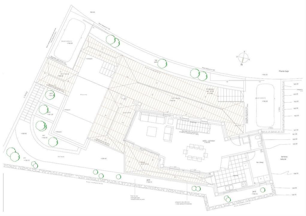 Bovenverdieping (daggedeelte): een ruime en lichte woonkamer, moderne keuken, gastentoilet en een groot buitengedeelte met zowel overdekte als open terrassen. Vanaf hier geniet u van een stijlvolle chill-out zone direct naast het indrukwekkende infinity zwembad.Benedenverdieping (nachtgedeelte): drie comfortabele slaapkamers en twee badkamers, ontworpen met hoogwaardige materialen en een serene sfeer.De combinatie van strakke moderne architectuur, elegant interieurdesign en de rustige groene ligging maakt deze villa uitermate aantrekkelijk voor wie houdt van luxe, comfort en een eigentijdse levensstijl. Alle belangrijke voorzieningen — supermarkten, restaurants, scholen, sport- en golfclubs, wandelroutes en de prachtige stranden van Moraira — liggen op slechts enkele minuten rijden.