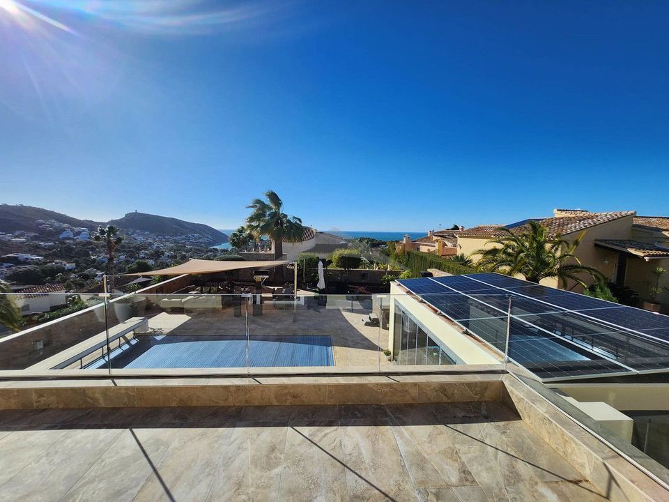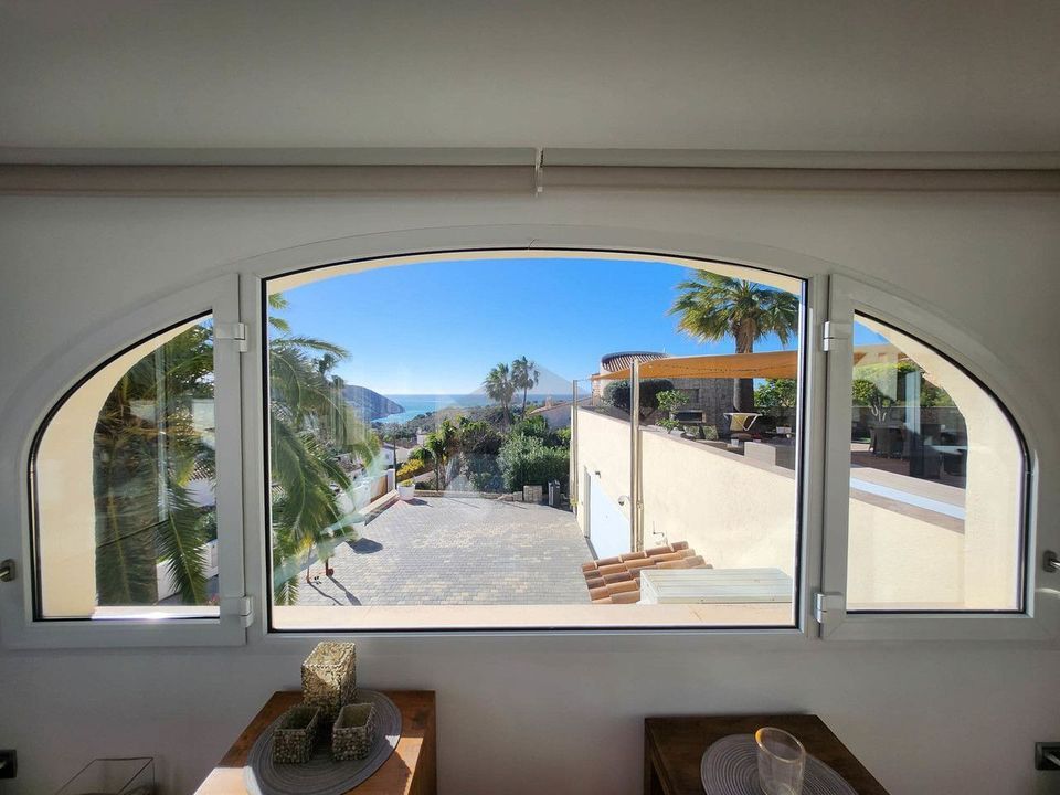 Gelegen in Moraira, in de zeer gewilde wijk El Portet, biedt deze uitzonderlijke villa een zuidelijke ligging, volledige privacy zonder inkijk en een adembenemend zeezicht. Vanuit elke ruimte van de woning geniet men van een panoramisch uitzicht over de Middellandse Zee en de iconische Peñón de Ifach, een werkelijk uniek en indrukwekkend decor.