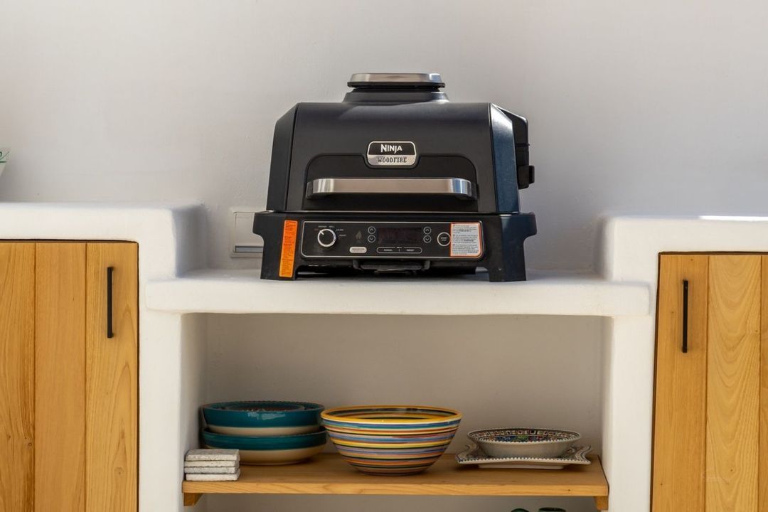 Aan de voorzijde bevindt zich een karaktervolle Naya met bogen en adembenemend zeezicht — de perfecte plek voor lange avonden in de buitenlucht. Aan de achterzijde creëert de patio een beschutte en groene ontspanningsruimte.