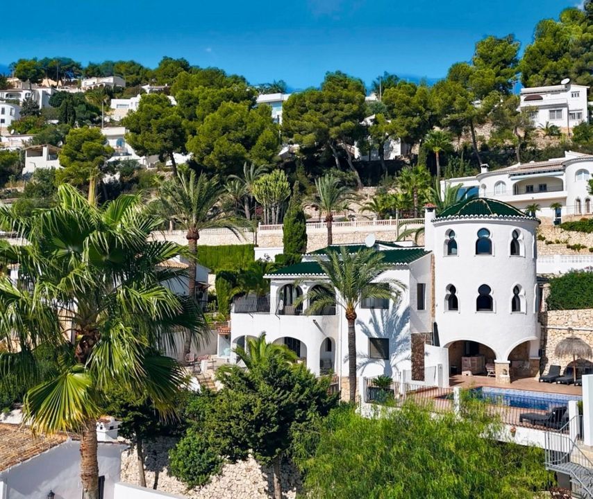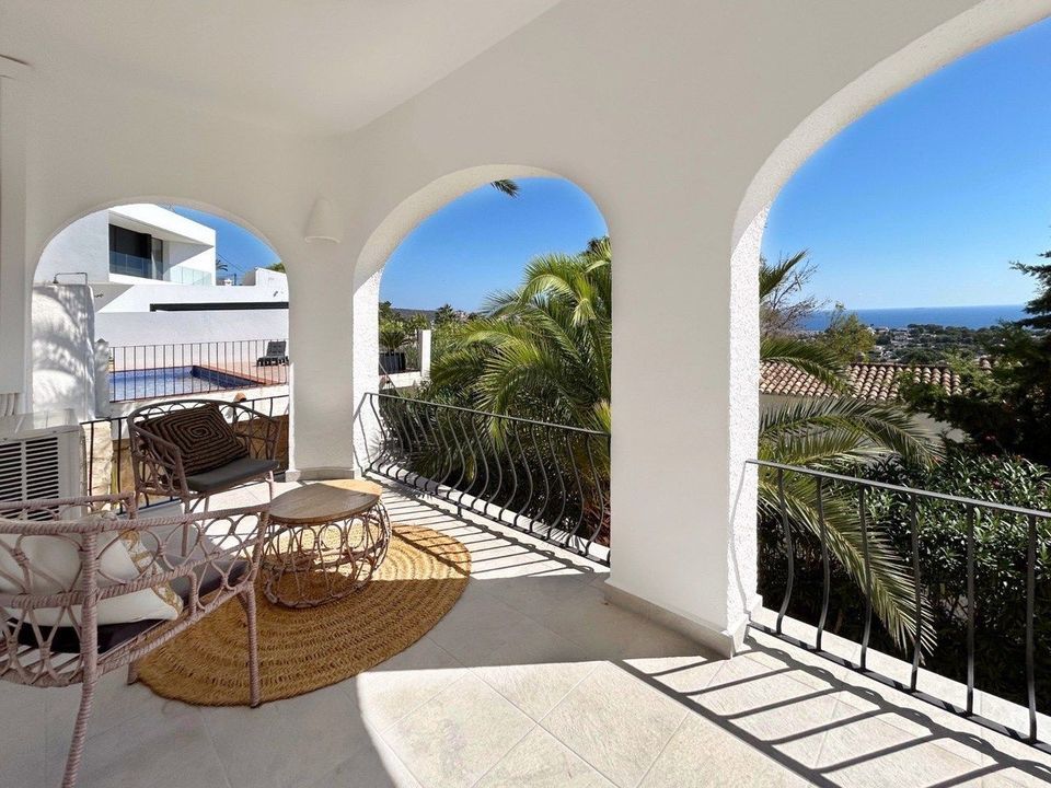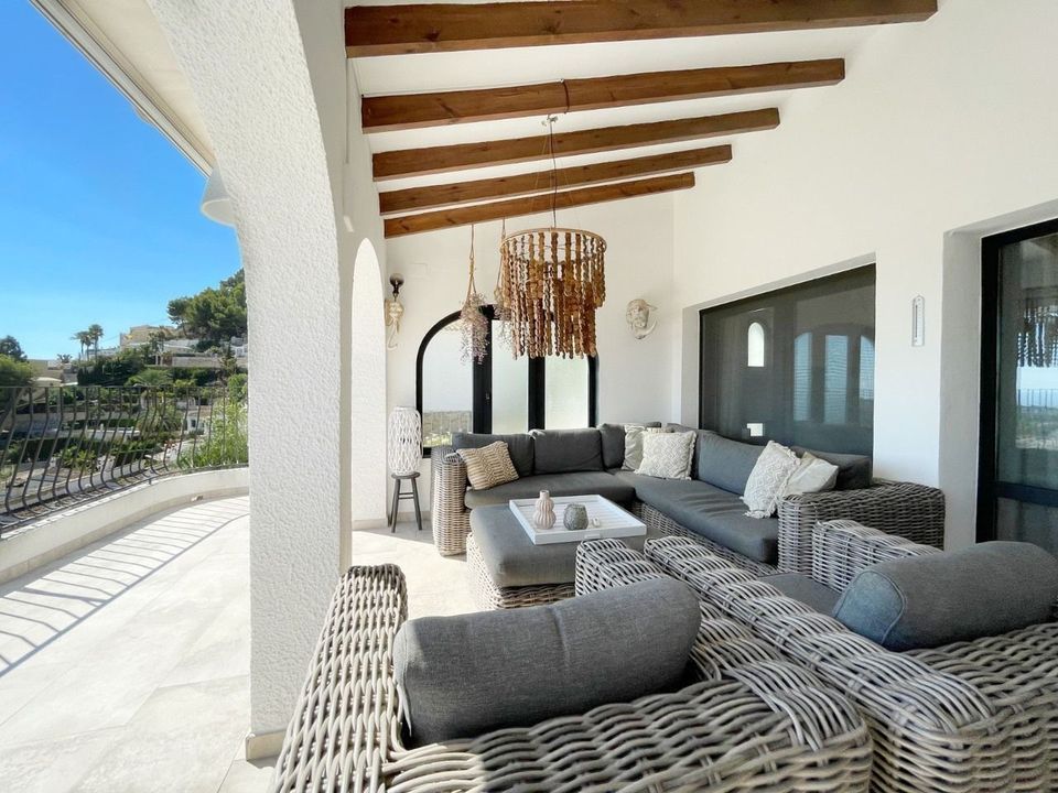 Prachtige villa met panoramisch zeezicht, gestyled in Ibizastijl in Benimeit, MorairaIn de geliefde woonwijk Benimeit in Moraira vinden we deze karaktervolle en ruime villa met een prachtig 180 graden panoramisch zeezicht. De woning is voorzien van alle comfort, volledig instapklaar en gelegen op korte afstand van het centrum en het strand.