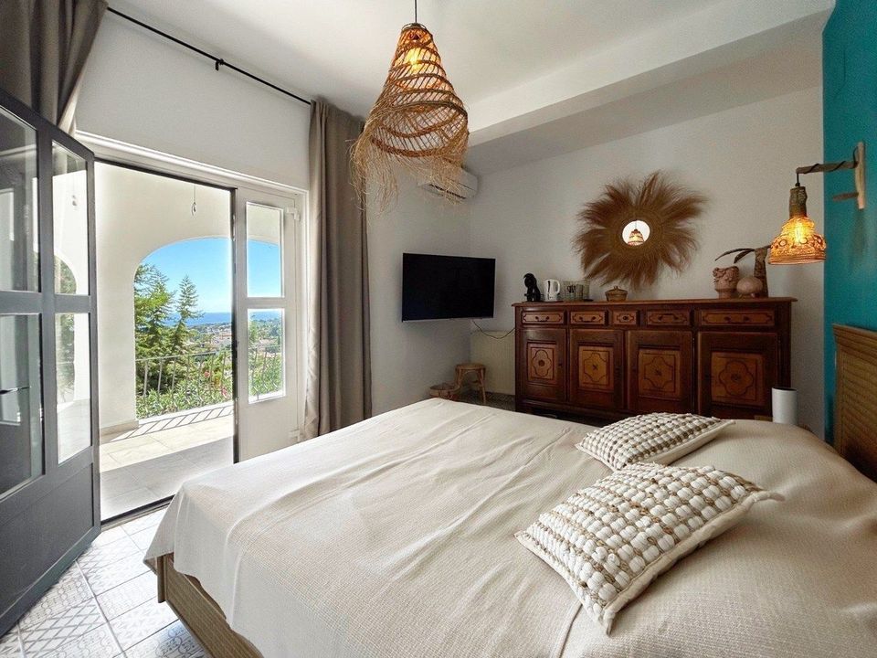Het buitenleven staat hier centraal: het grote terras rond het zwembad biedt volop ruimte om te zonnebaden, te ontspannen en te genieten van het adembenemende uitzicht over de Middellandse Zee. Aansluitend bevindt zich een gezellige overdekte lounge- en barruimte – een ideale plek om te genieten van lange zomeravonden met familie en vrienden.