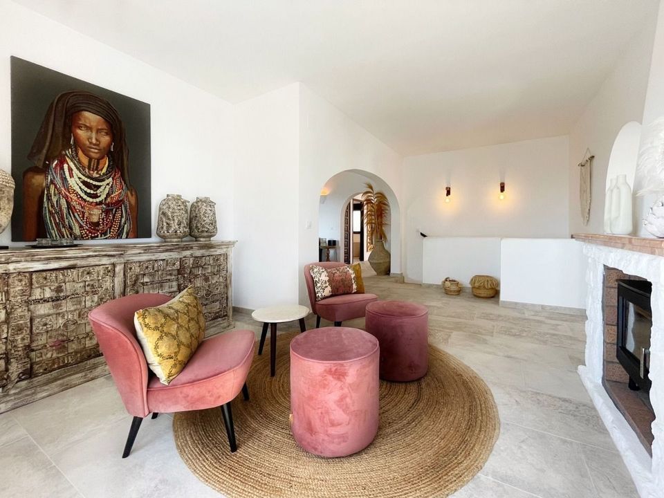 De villa heeft een bijzonder warme uitstraling, mede dankzij de fantastische styling in Ibizastijl. De verschillende zitjes en gezellige hoekjes maken van dit huis een waar familieparadijs, zowel voor permanente bewoning als voor gebruik als vakantiehuis.
