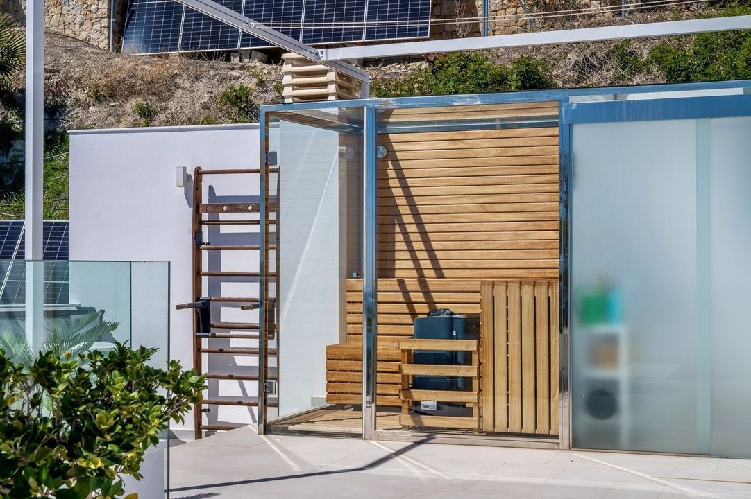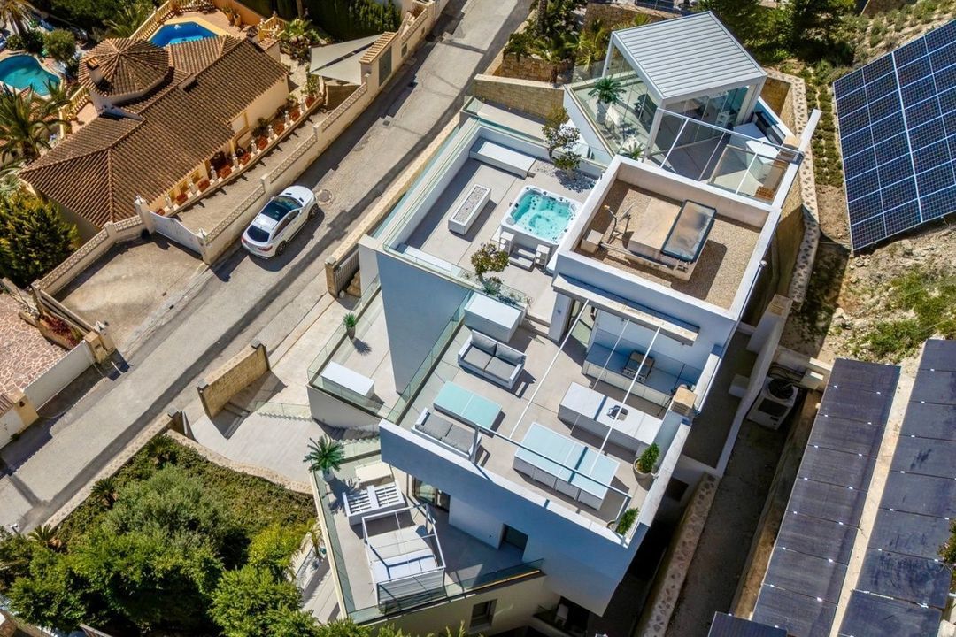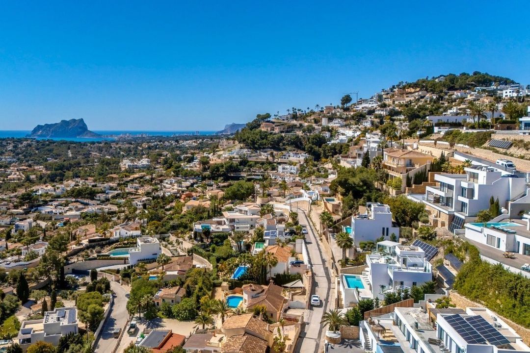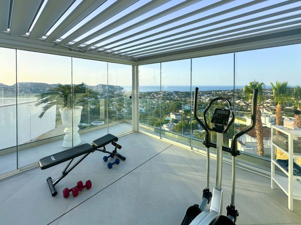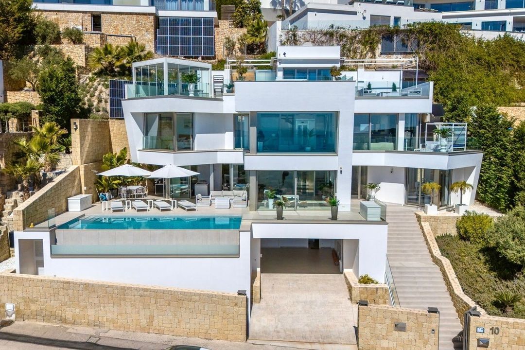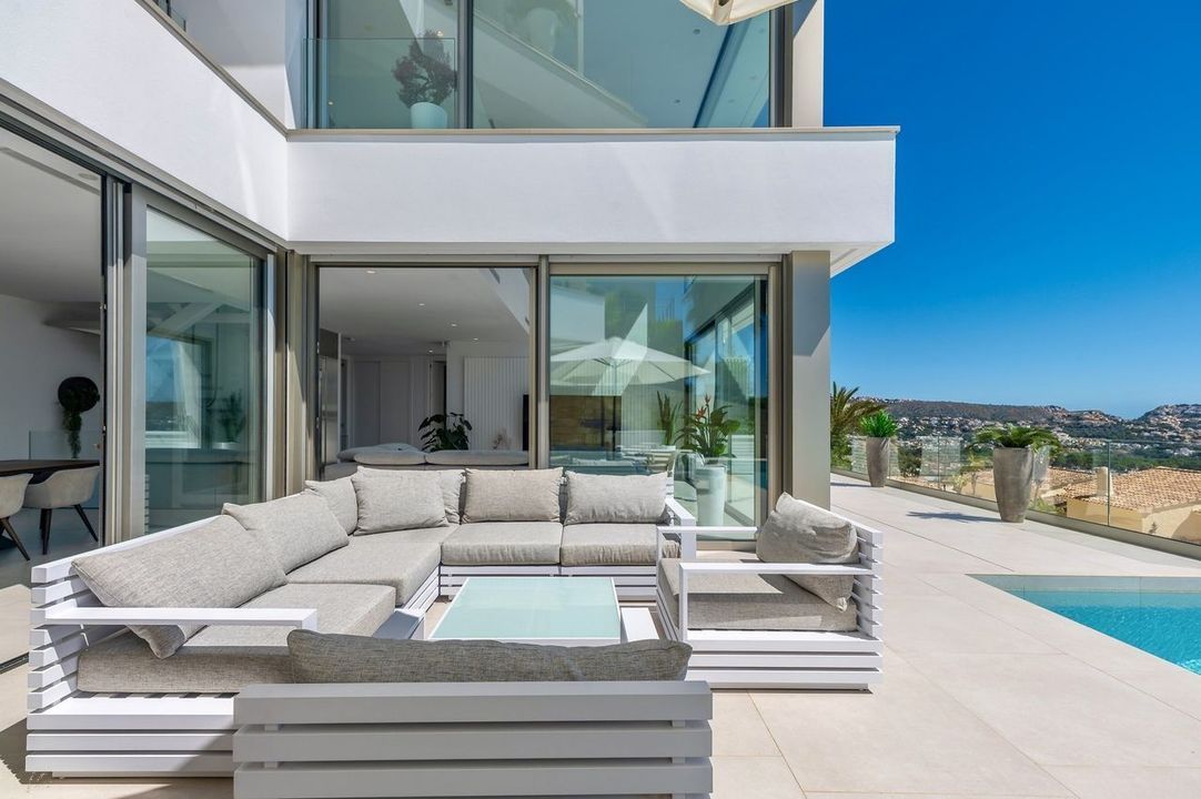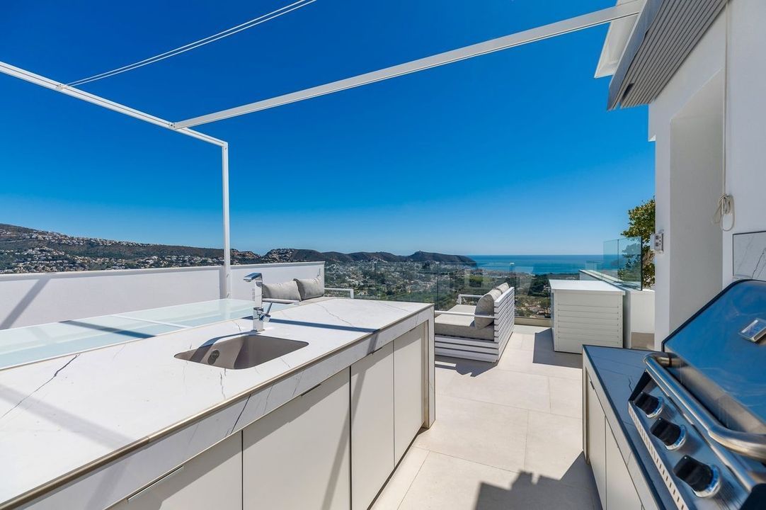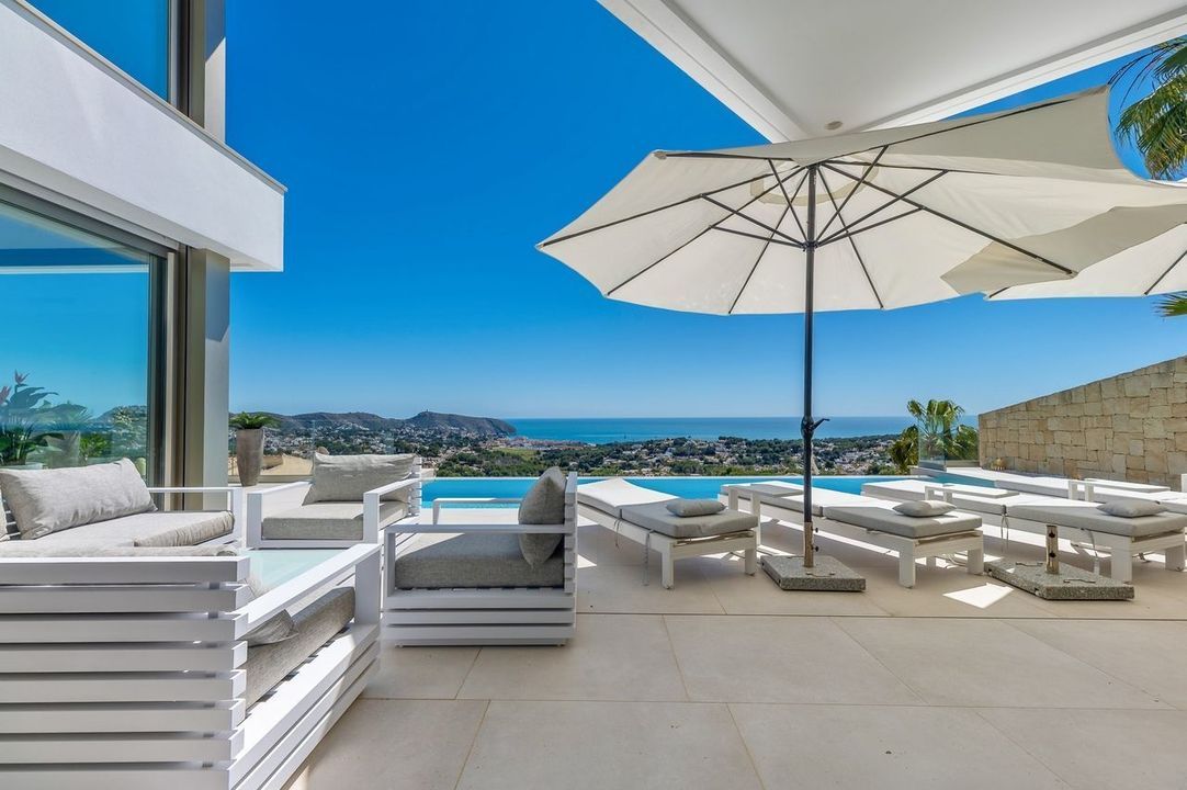 Deze villa in Moraira, gebouwd in 2023 en op het zuidoosten gericht, biedt panoramisch uitzicht op zee. Het pand ligt op 3,5 km van het stadscentrum en het strand.