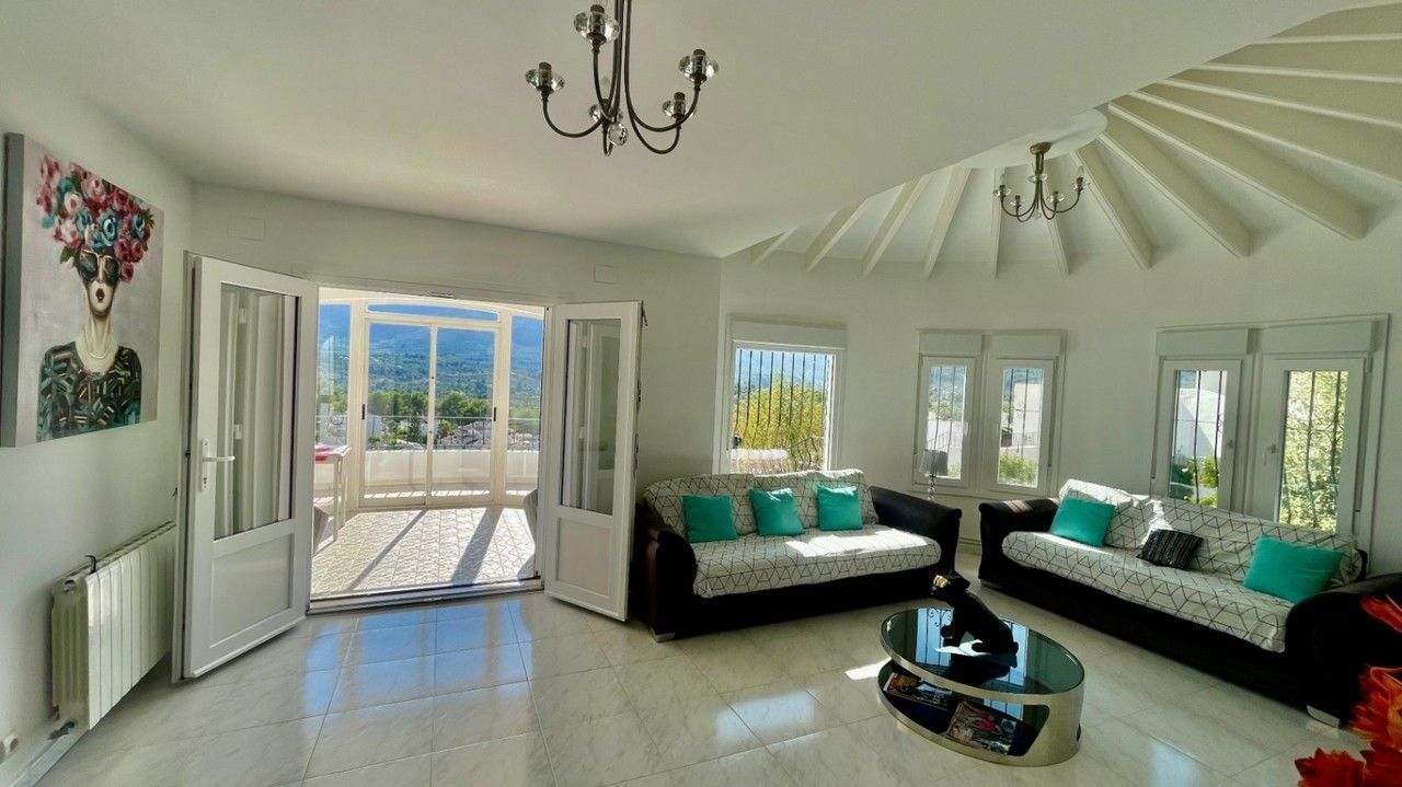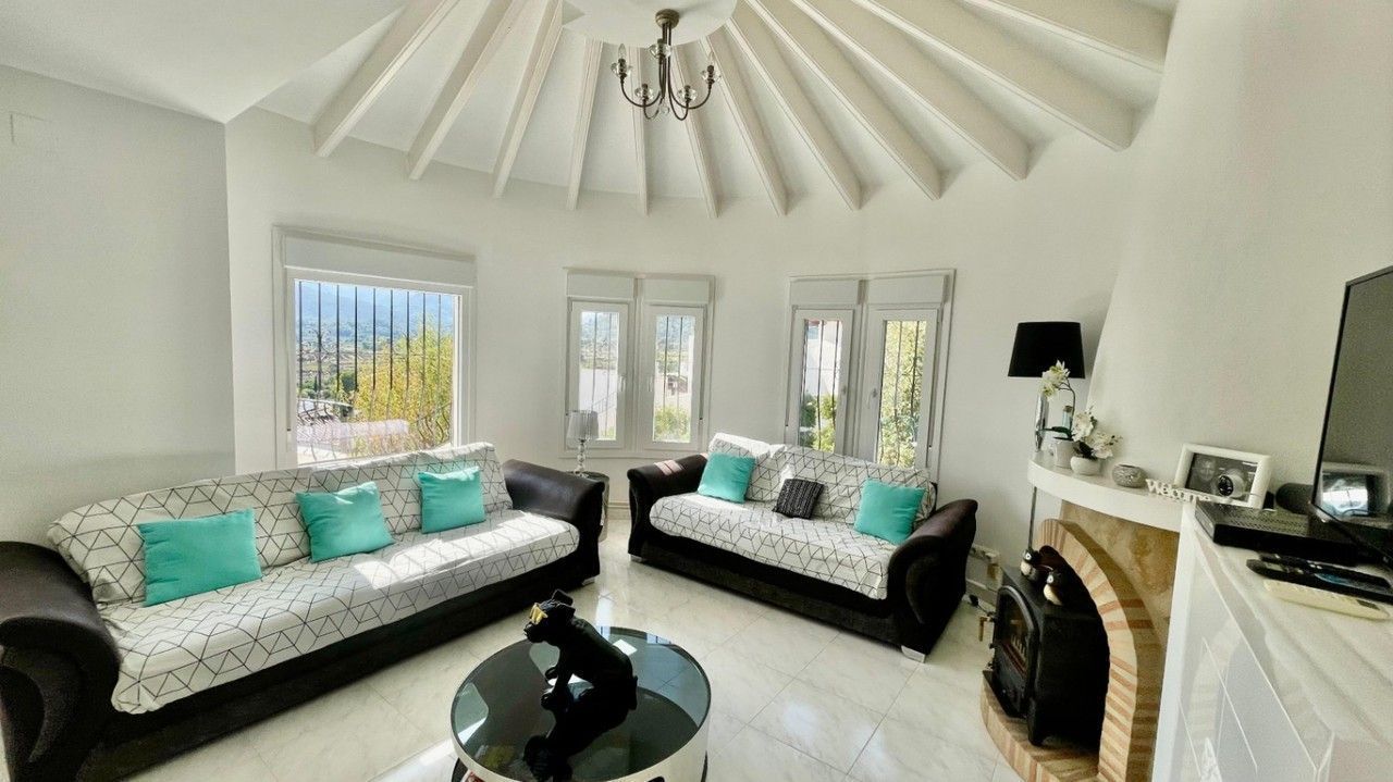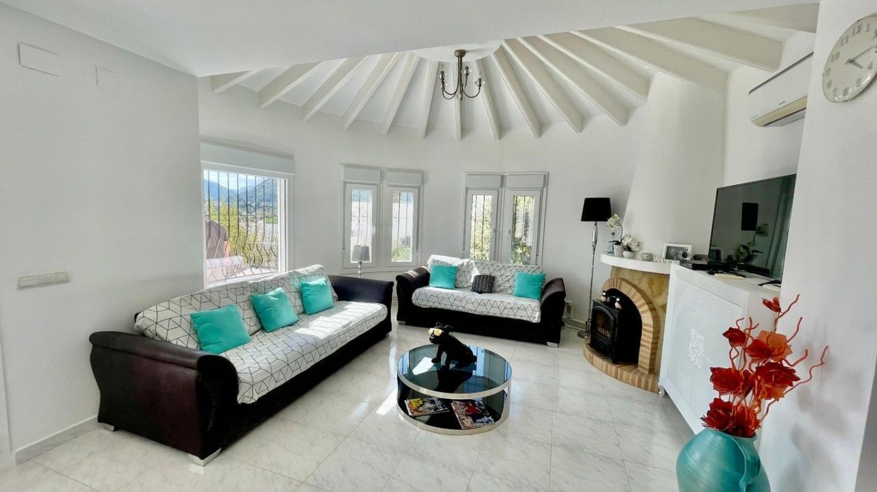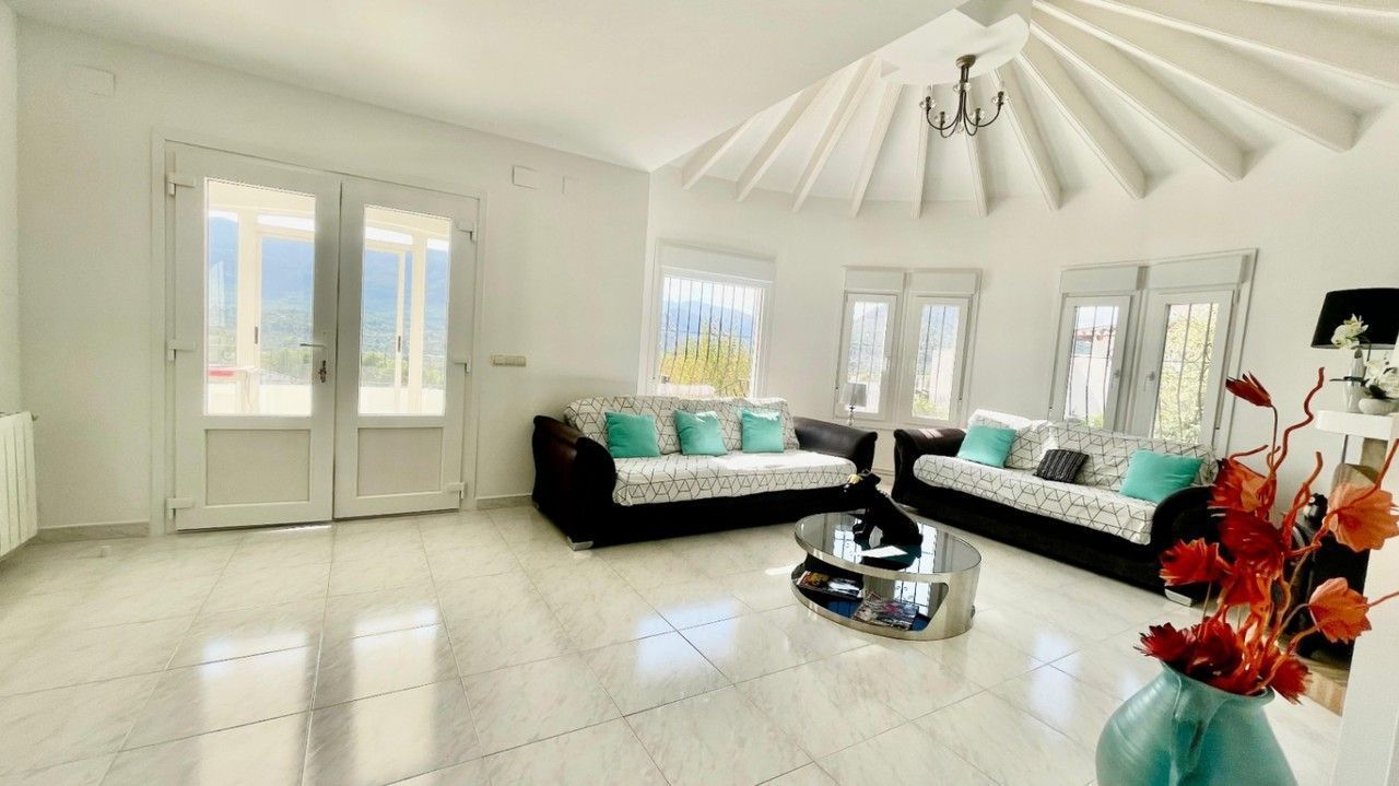Luxe, lichte en luchtige moderne vrijstaande villa met spectaculair uitzicht op de bergen en de vallei op het zuiden, gelegen in de populaire en gewilde wijk Puerta del Valle. De hoofdwoning bevindt zich op één niveau en bestaat uit een ruime open woonkamer met eethoek, een stenen open haard met houtkachel, een galerijplafond met karakteristiek raam, airconditioning (warm en koud), dubbele openslaande deuren naar een glazen naya-eetkamer met prachtig uitzicht op de vallei en openslaande deuren naar een open balkon met zonneterras. De luxe, volledig ingerichte keuken heeft een buitendeur naar een achterliggend privéterras. Een gang leidt naar de hoofdslaapkamer met twee inbouwkasten, airconditioning (warm en koud) en een eigen inloopdouche. Op dit niveau zijn er nog twee tweepersoonsslaapkamers met inbouwkasten en een gezinsbadkamer met inloopdouche. De woning heeft ook een zelfstandig appartement met een zithoek, keuken, plafondventilator, tweepersoonsslaapkamer, opslagruimte en een eigen doucheruimte. Er is ook een grote bergruimte. Buiten is er een zwembad van 8 x 4 meter met privéterrassen, buitendouche, schaduwrijke zonneschermen om buiten te eten, onderhoudsarme mediterrane tuinen op terrassen met een irrigatiesysteem. De villa heeft een beveiligde toegangspoort met twee opritten: één op het lagere niveau en de tweede leidt naar de hoofdingang van het huis. Er is voldoende parkeergelegenheid en ook ruimte voor campers. Deze woning is voorzien van hoogwaardige dubbele beglazing en centrale verwarming op gas. Deze uitstekende woning zou een prachtige gezinswoning of een uitstekende vakantie-investering zijn. Een bezichtiging is essentieel om de vele bijzondere kenmerken en het prachtige uitzicht te kunnen waarderen.